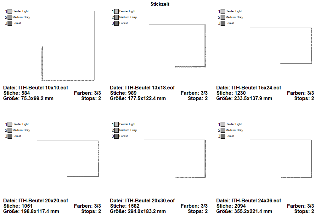 Folgende Stickformate werden in der ZIP-Datei angeboten: PEC - PES - XXX - JEF - JEF+ - SEW - EXP - VIP - VP3 - TXT - DST - HUS. Andere Formate gerne auf Anfrage.