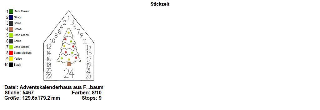 ITH-Stickdatei für den 13x18 Rahmen - Adventskalenderhaus aus Filz Tannenbaum. Das Häuschen passt wunderbar zu natürlicher Deko mit Holz und Tannenzweigen.