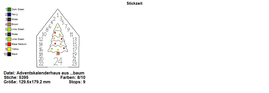ITH-Stickdatei für den 13x18 Rahmen - Adventskalenderhaus aus Stoff Tannenbaum. Das Häuschen passt wunderbar zu natürlicher Deko mit Holz und Tannenzweigen.