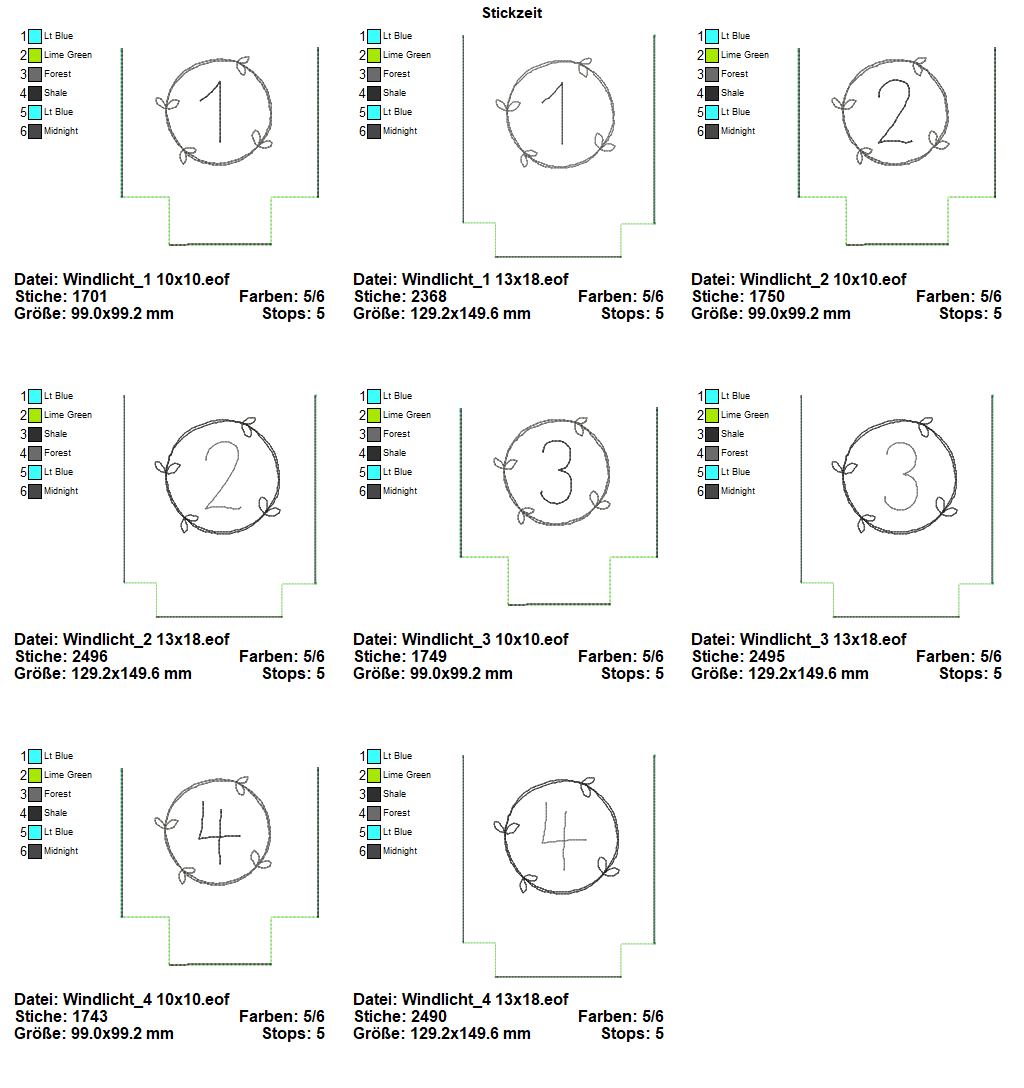 Folgende Stickformate werden in der ZIP-Datei angeboten: PEC - PES - XXX - JEF - JEF+ - SEW - EXP - VIP - VP3 - DST - HUS.