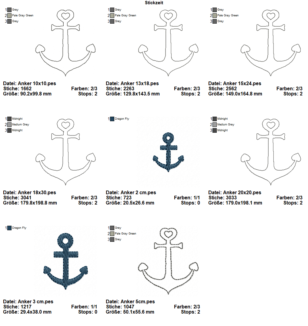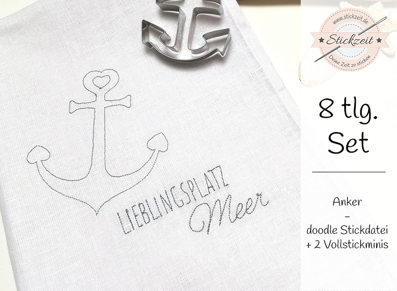 8 teiliges Anker - doodle Stickdatei Set. Echte Hamburger doodle Anker für Deinen Heimathafen.