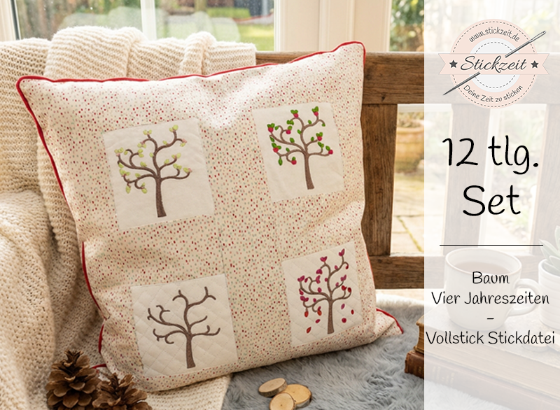 12 teiliges Vollstick Stickdatei Set - Baum vier Jahreszeiten - für den 10x10 sowie 13x18 Rahmen.