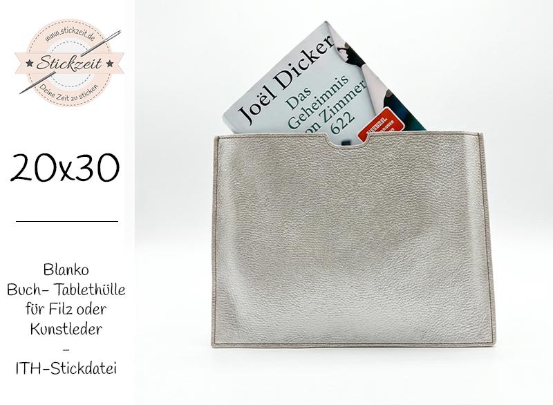 Mit dieser Stickdatei nähst du eine praktische Buch- oder Tablethülle komplett im 20x30 cm Rahmen.