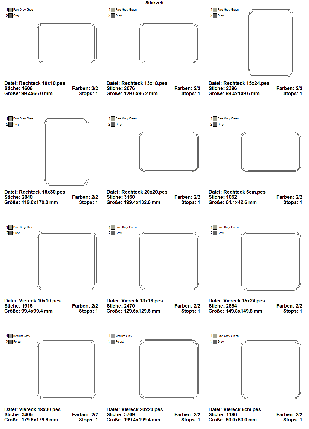 Folgende Stickformate werden in der ZIP-Datei angeboten: PEC - PES - XXX - JEF - JEF+ - SEW - EXP - VIP - VP3 - DST - HUS.