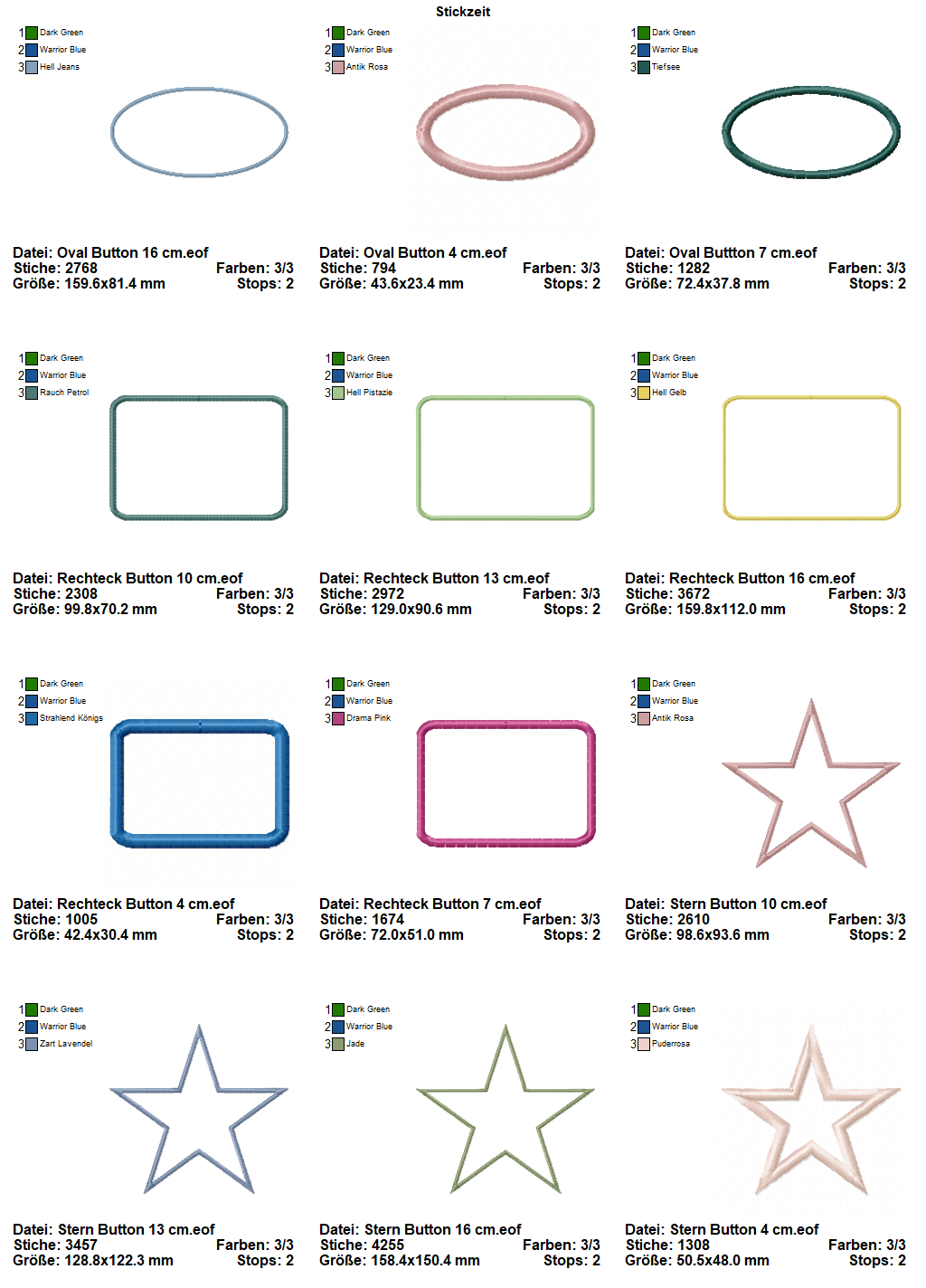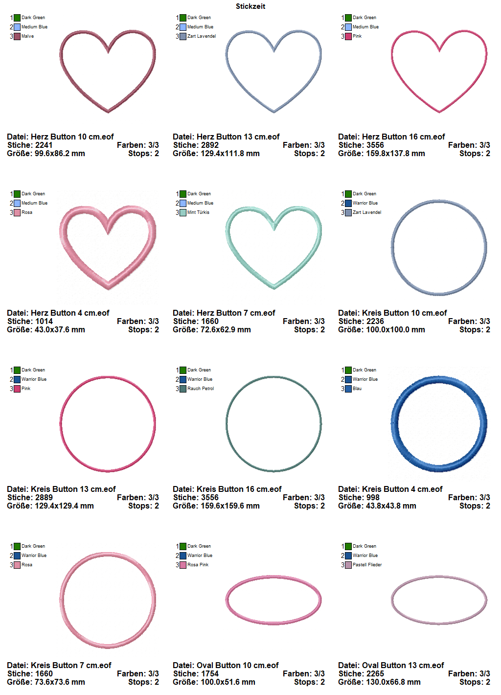 Folgende Stickformate werden in der ZIP-Datei angeboten: PEC - PES - XXX - JEF - JEF+ - SEW - EXP - VIP - VP3 - DST - HUS.