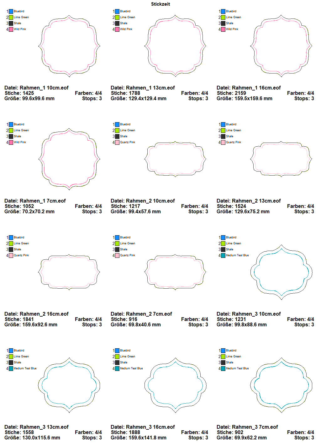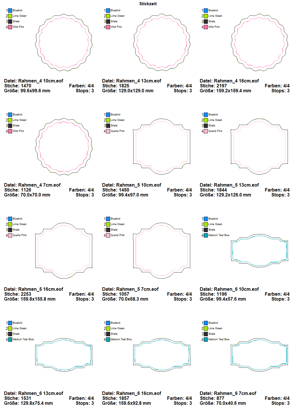 Folgende Stickformate werden in der ZIP-Datei angeboten: PEC - PES - XXX - JEF - JEF+ - SEW - EXP - VIP - VP3 - DST - HUS.