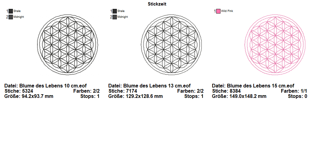 3 teiliges redwork Set - Blume des Lebens. Sticke deine Blume des Lebens.