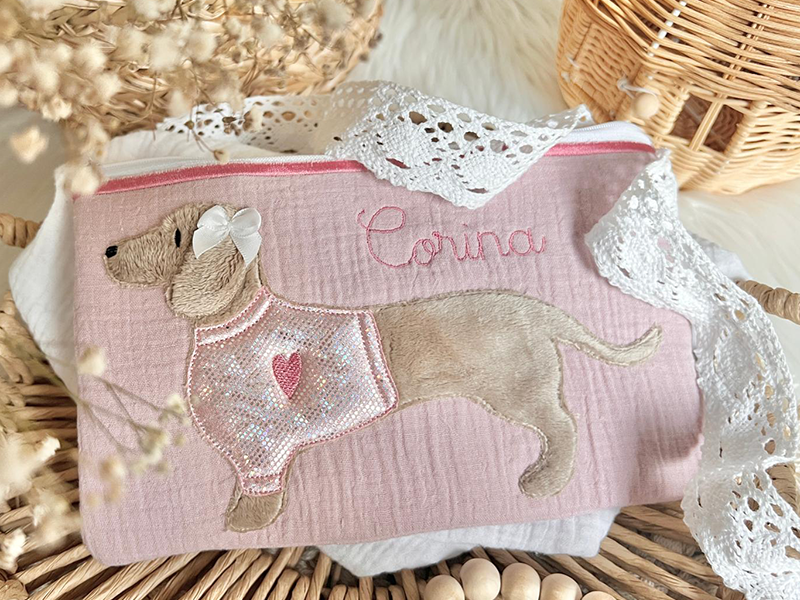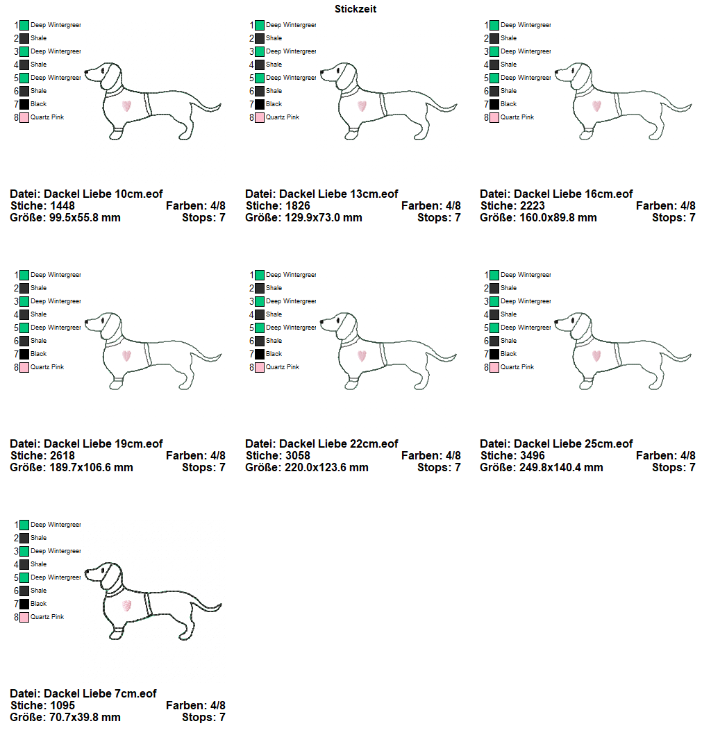 7 teiliges doodle Stickdatei Set - Dackel Liebe - ab dem 10x10 bis 24x36 Rahmen.
