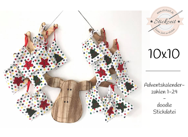 24 doodle Adventskalenderzahlen mit Tannen und Sterndesign für den 10x10 Rahmen. Zaubere Deinen individuellen Adventskalender.
