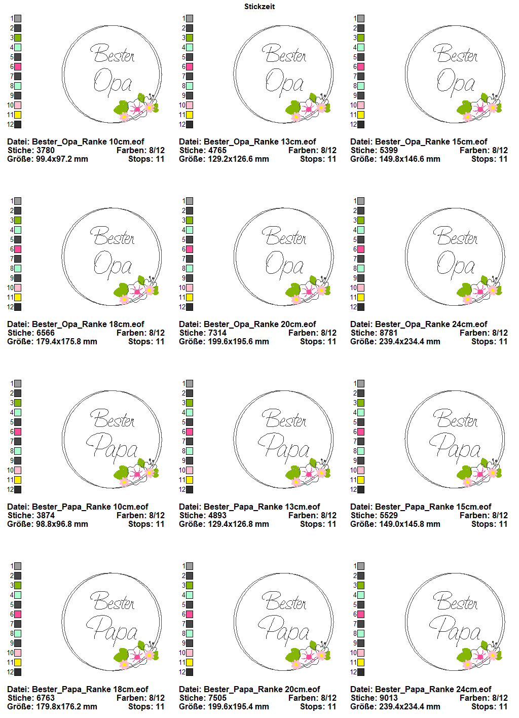 12 teiliges doodle Stickdatei Set - Button Bester Papa / Bester Opa. Bestehend aus 2 Dateien "Bester Papa / Bester Opa" zu je 6 Größen.