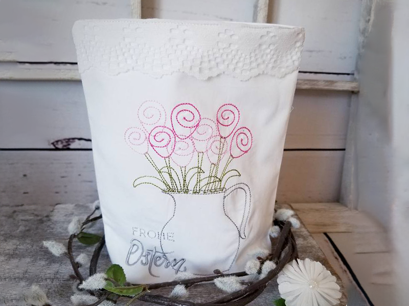 3 teiliges doodle Stickdatei Set - Blumenvase mit Tulpen. So holst Du den Frühling in Dein zu Hause.