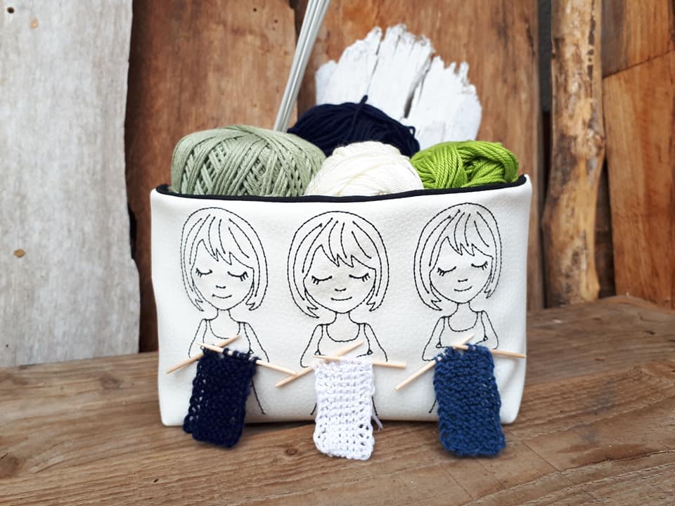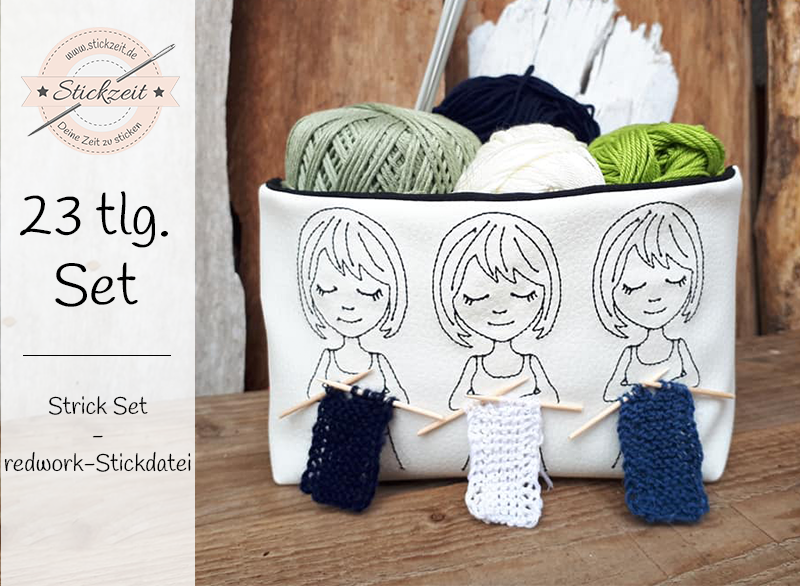 23 teiliges doodle Stickdatei - Strick Set ab dem 10x10 Rahmen zu sticken. Eine besondere Stickdatei für Strickliebhaber.