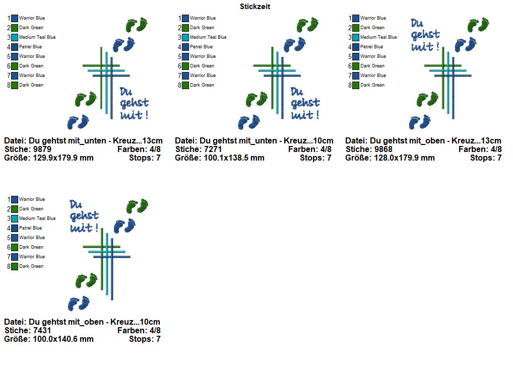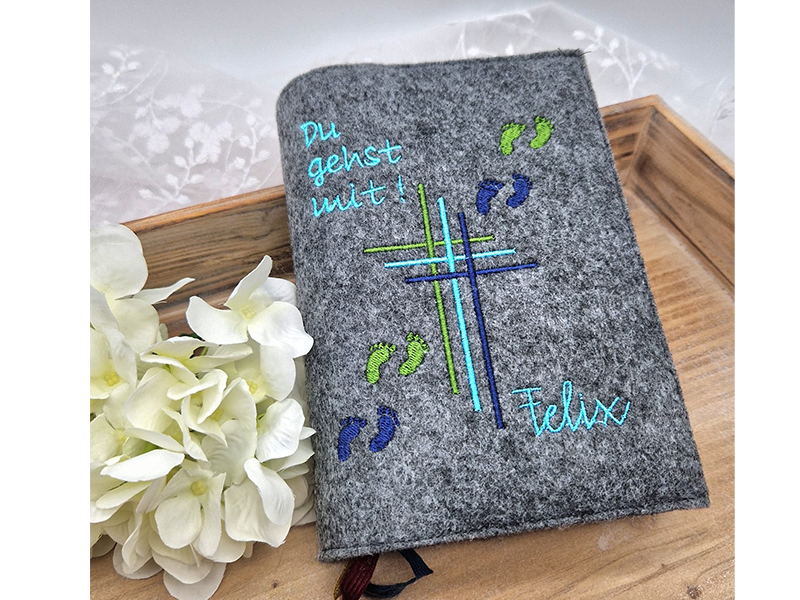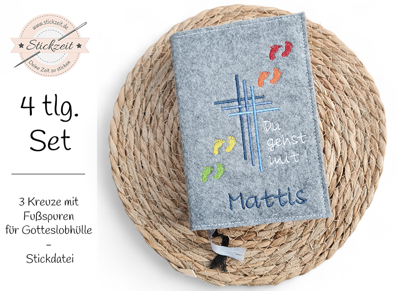4 teiliges Set - Du gehst mit - Kreuze - Gotteslobhülle Vollstick für den 10x10 und 13x18 Rahmen.