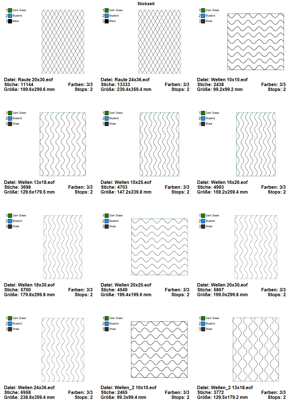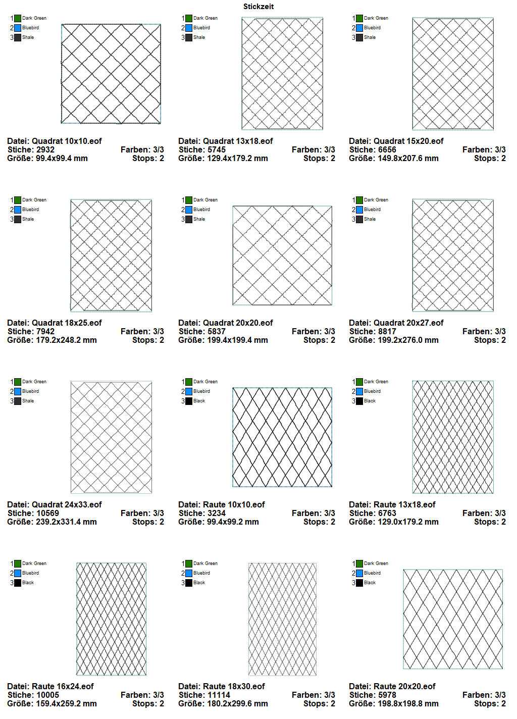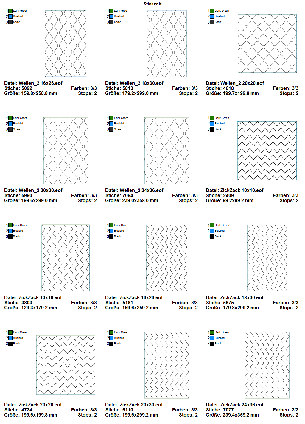 Folgende Stickformate werden in der ZIP-Datei angeboten: PEC - PES - XXX - JEF - JEF+ - SEW - EXP - VIP - VP3 - DST - HUS.