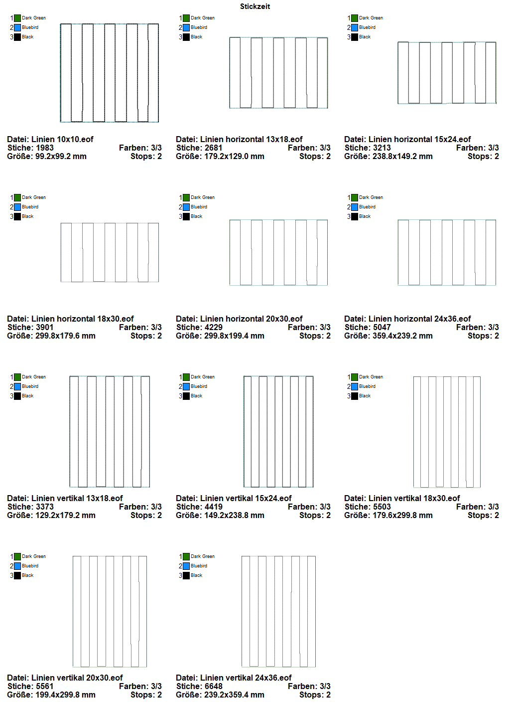 Folgende Stickformate werden in der ZIP-Datei angeboten: PEC - PES - XXX - JEF - JEF+ - SEW - EXP - VIP - VP3 - DST - HUS.