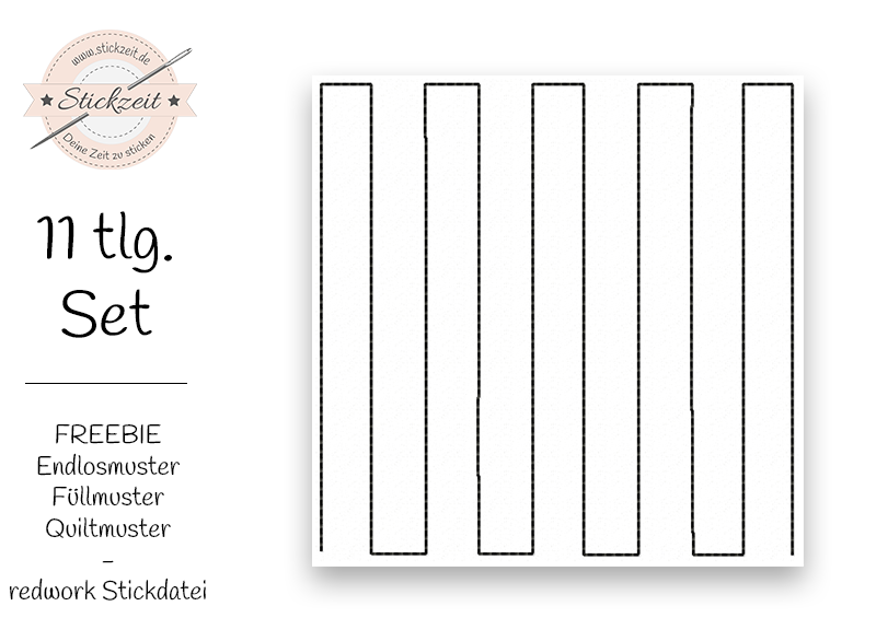11 teiliges Stickdatei Set - redwork Endlosmuster Füllmuster Quiltmuster Streifen - ab dem 10x10 Rahmen zu sticken.