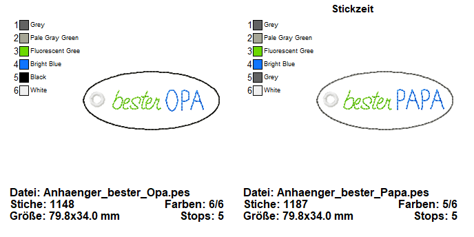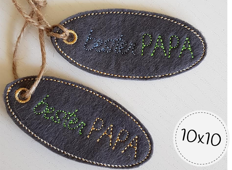 2 ITH-Anhhänger "bester Papa" und "bester Opa" für den 10x10 Rahmen.