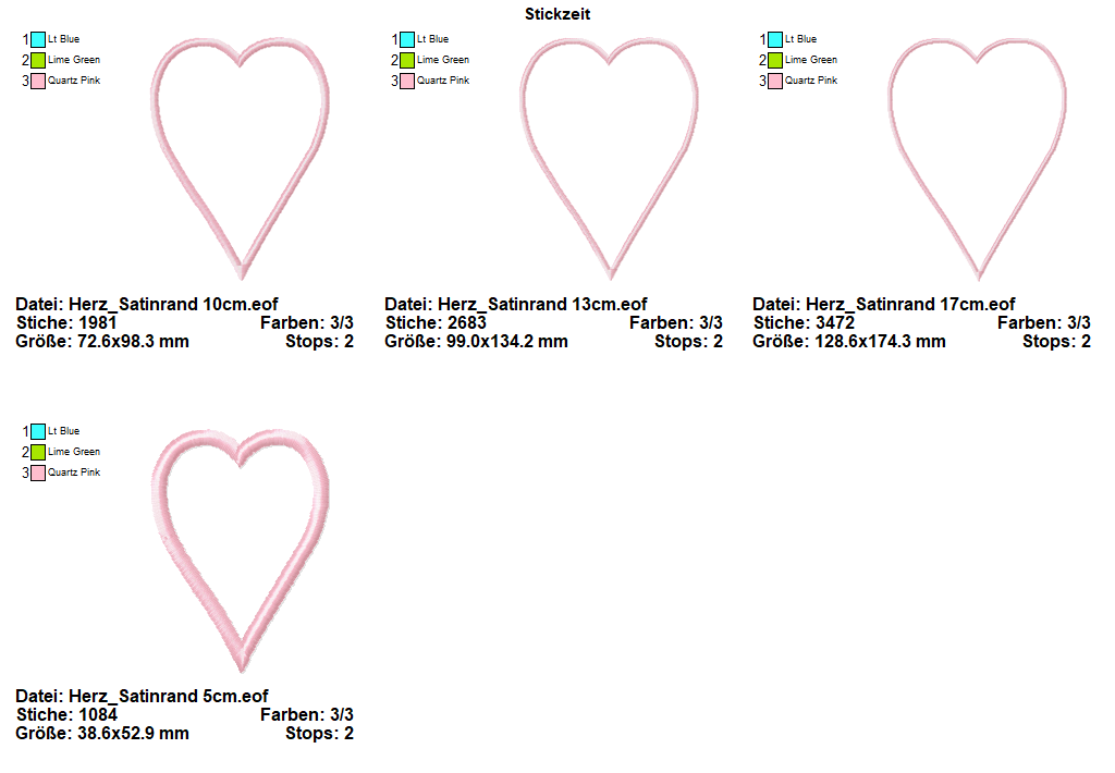 Folgende Stickformate werden in der ZIP-Datei angeboten: PEC - PES - XXX - JEF - JEF+ - SEW - EXP - VIP - VP3 - DST - HUS.