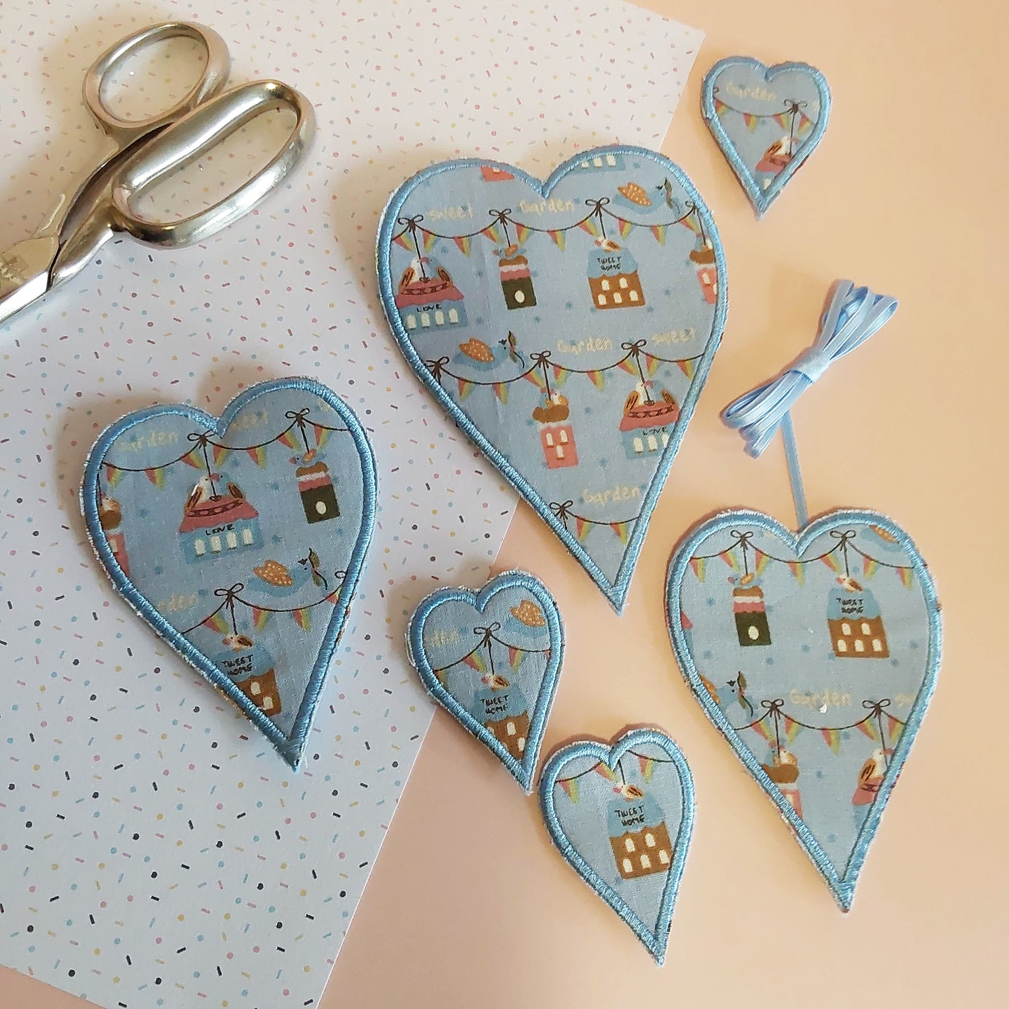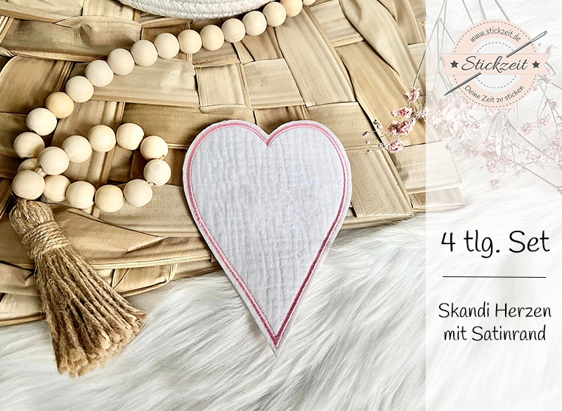 4 teiliges Appli-Set - skandi Herzen mit Satinrand für den 10x10 sowie 13x18 Rahmen.