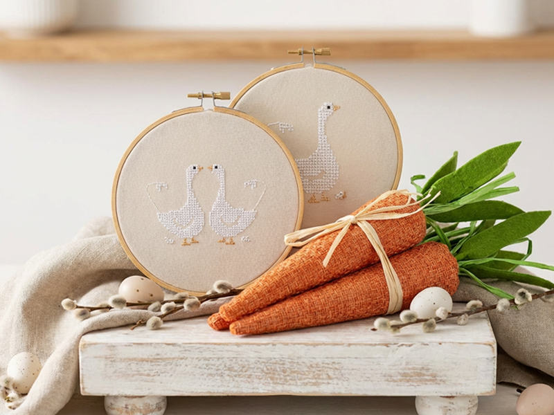 Bringe mit diesen charmanten Gänsen ein Stück Landhausidylle in deine Stickprojekte!