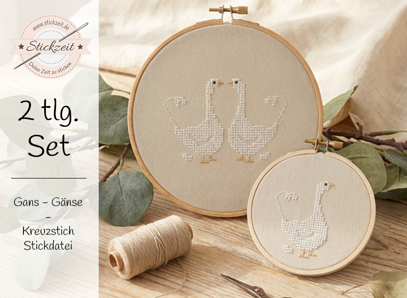 2 teiliges Kreuzstich Stickdatei Set - Gänse - ab dem 10x10 Rahmen.