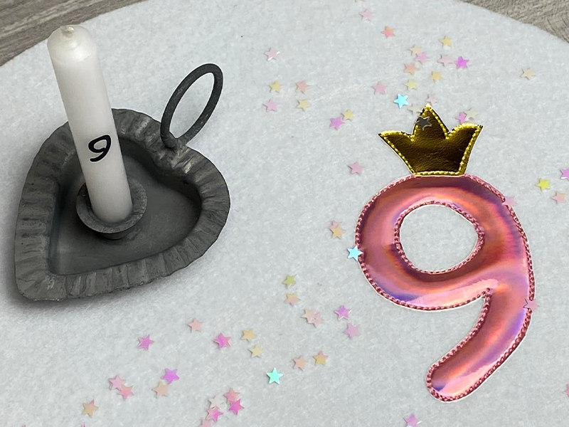 18 teiliges doodle Stickdatei Set - Geburtstagszahlen Krone - in den Größen 10cm und 13cm.