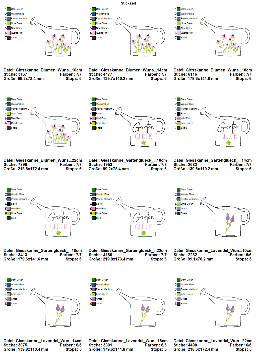 ITH Stickdatei Set „Wunscherfüller Gießkanne“ – 12-teilig