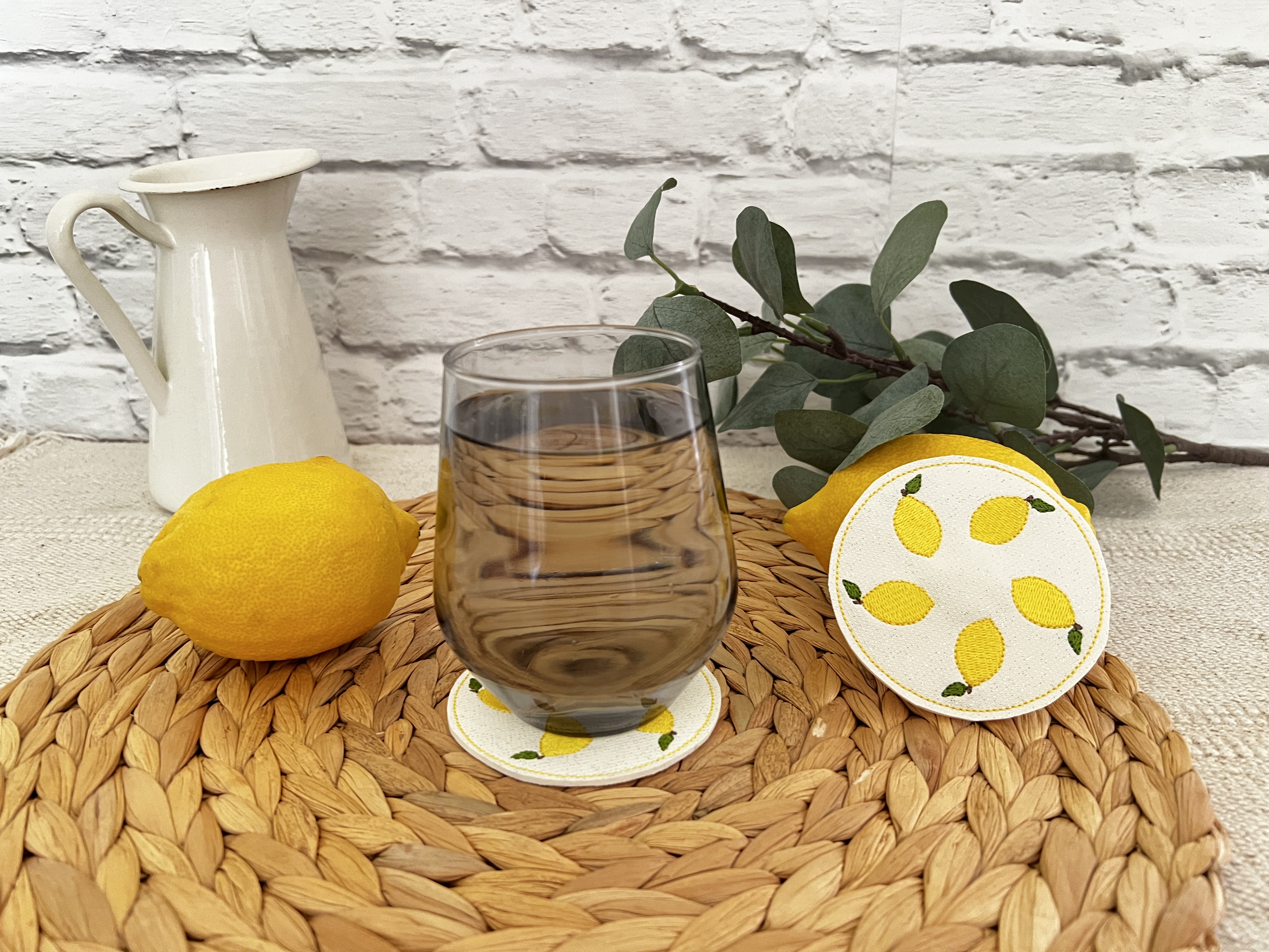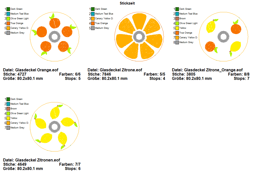 4 teliges ITH-Stickdatei Set - Glasdeckel Zitrus für den 10x10 Rahmen.