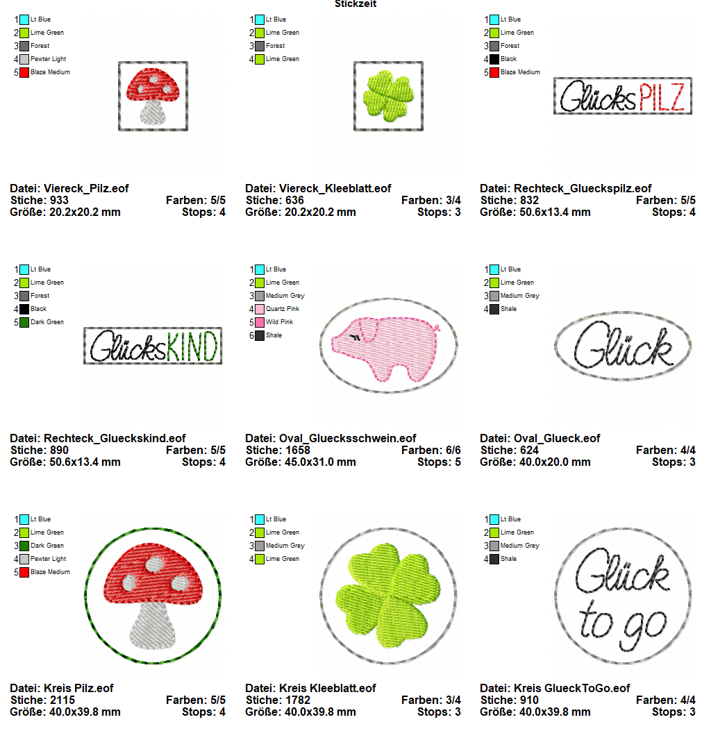 Folgende Stickformate werden in der ZIP-Datei angeboten: PEC - PES - XXX - JEF - JEF+ - SEW - EXP - VIP - VP3 - DST - HUS.
