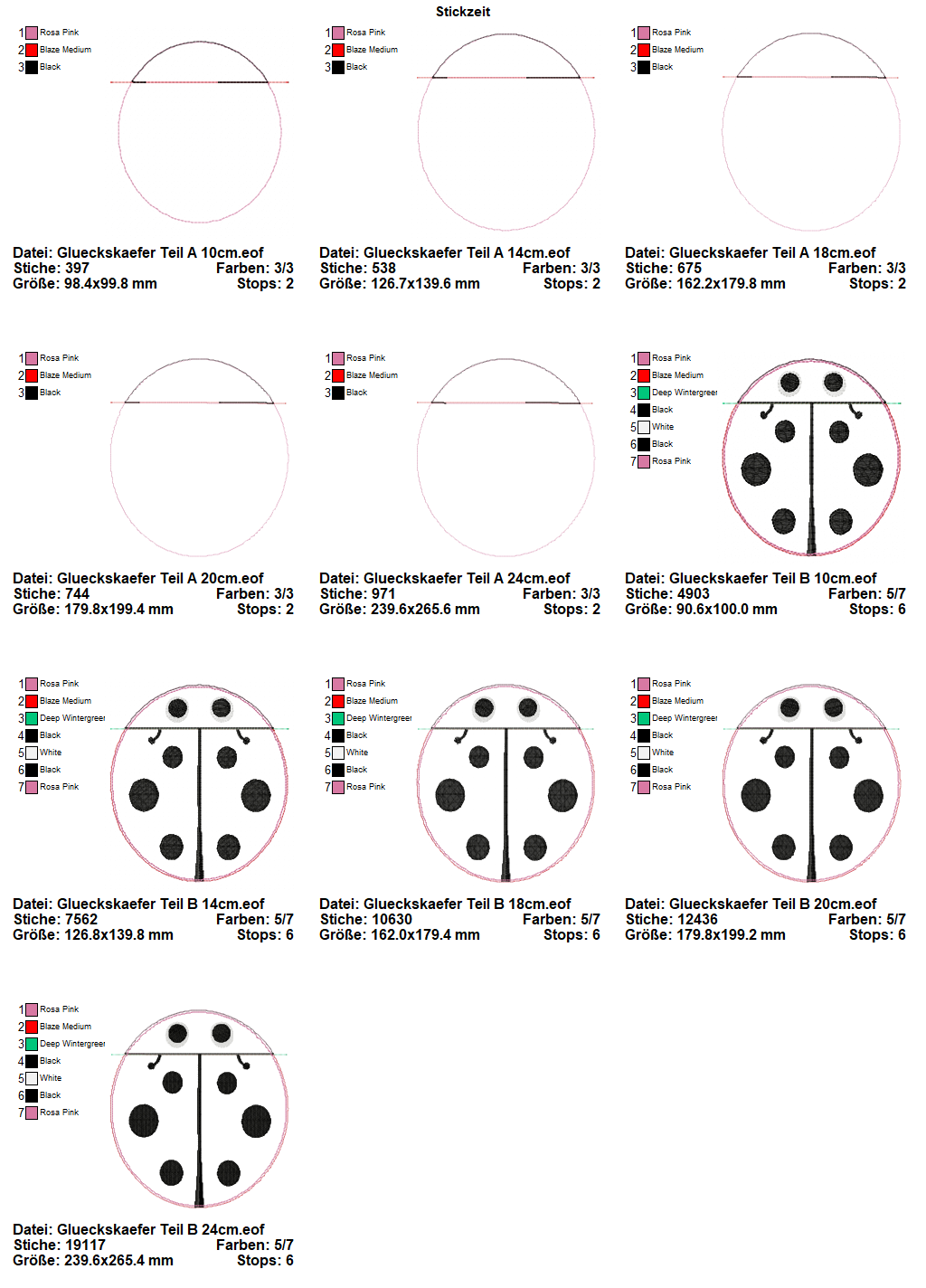 5 teiliges ITH-Stickdatei Set - Glückskäfer Marienkäfer - ab dem 10x10 Rahmen zu sticken.