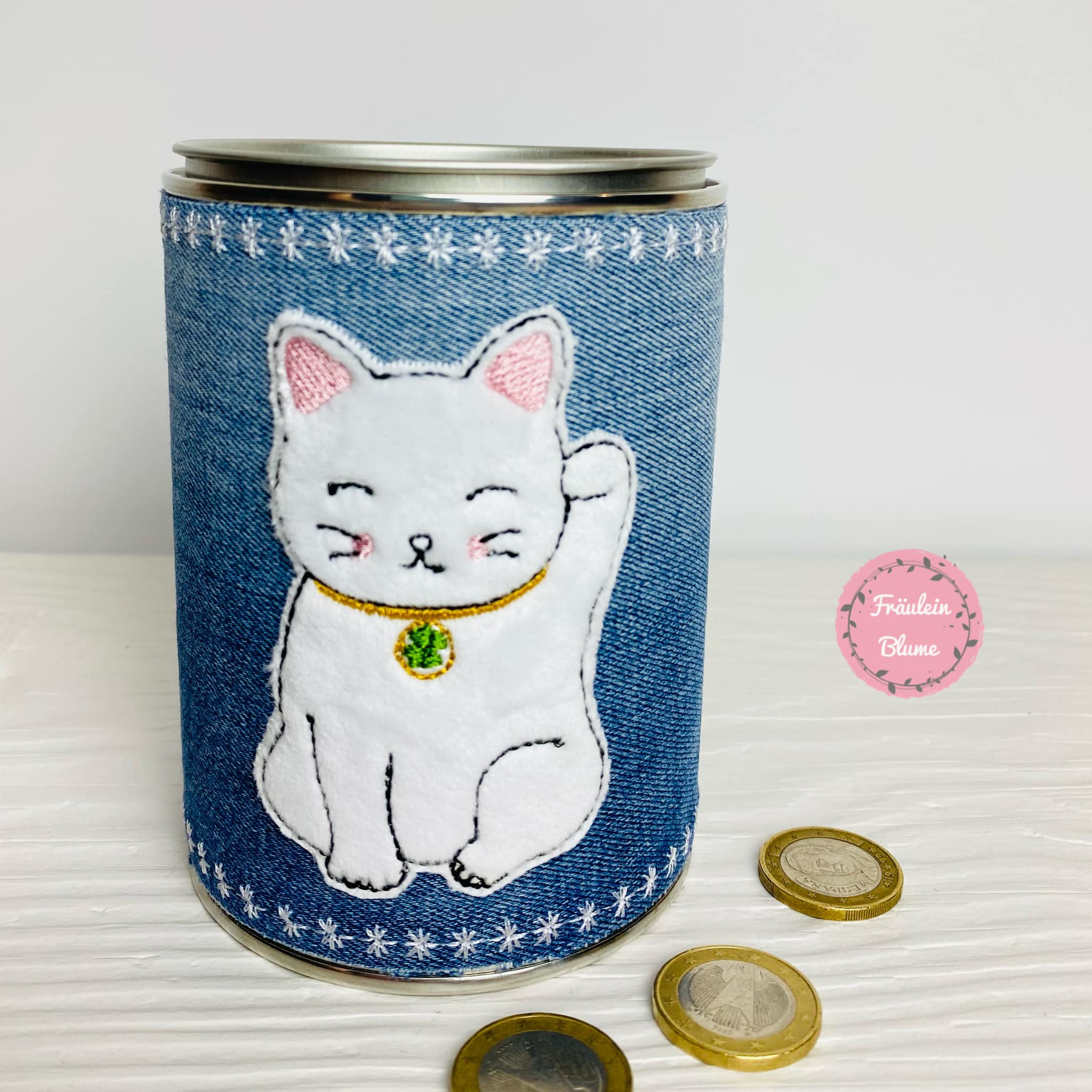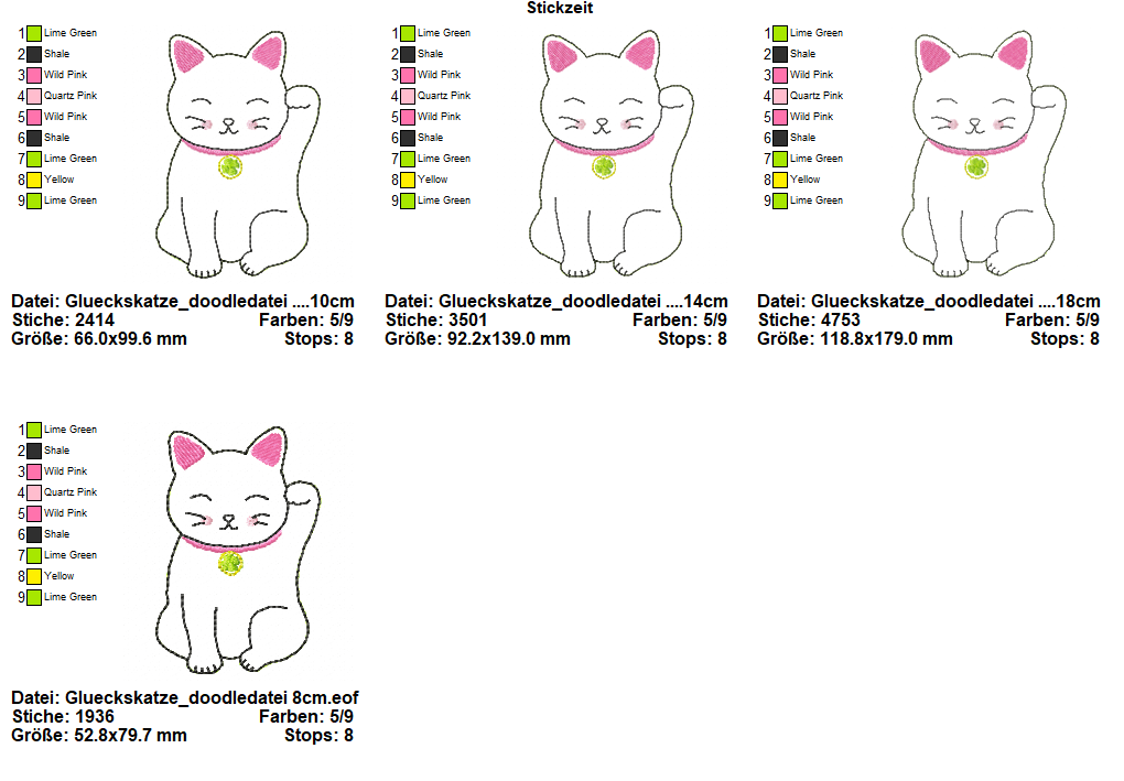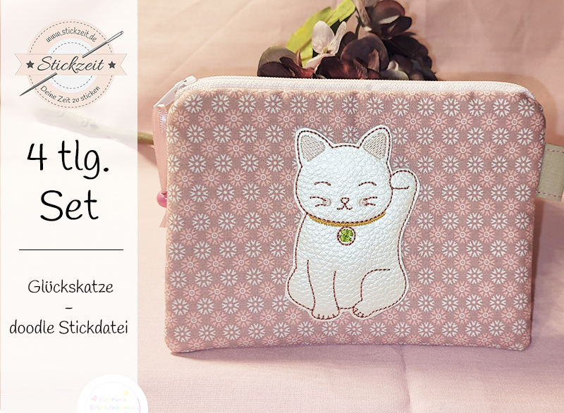 4 teiliges doodle Stickdatei Set - Glückskatze, ab dem 10x10 Rahmen.