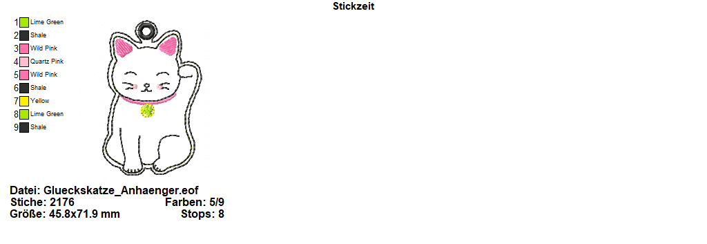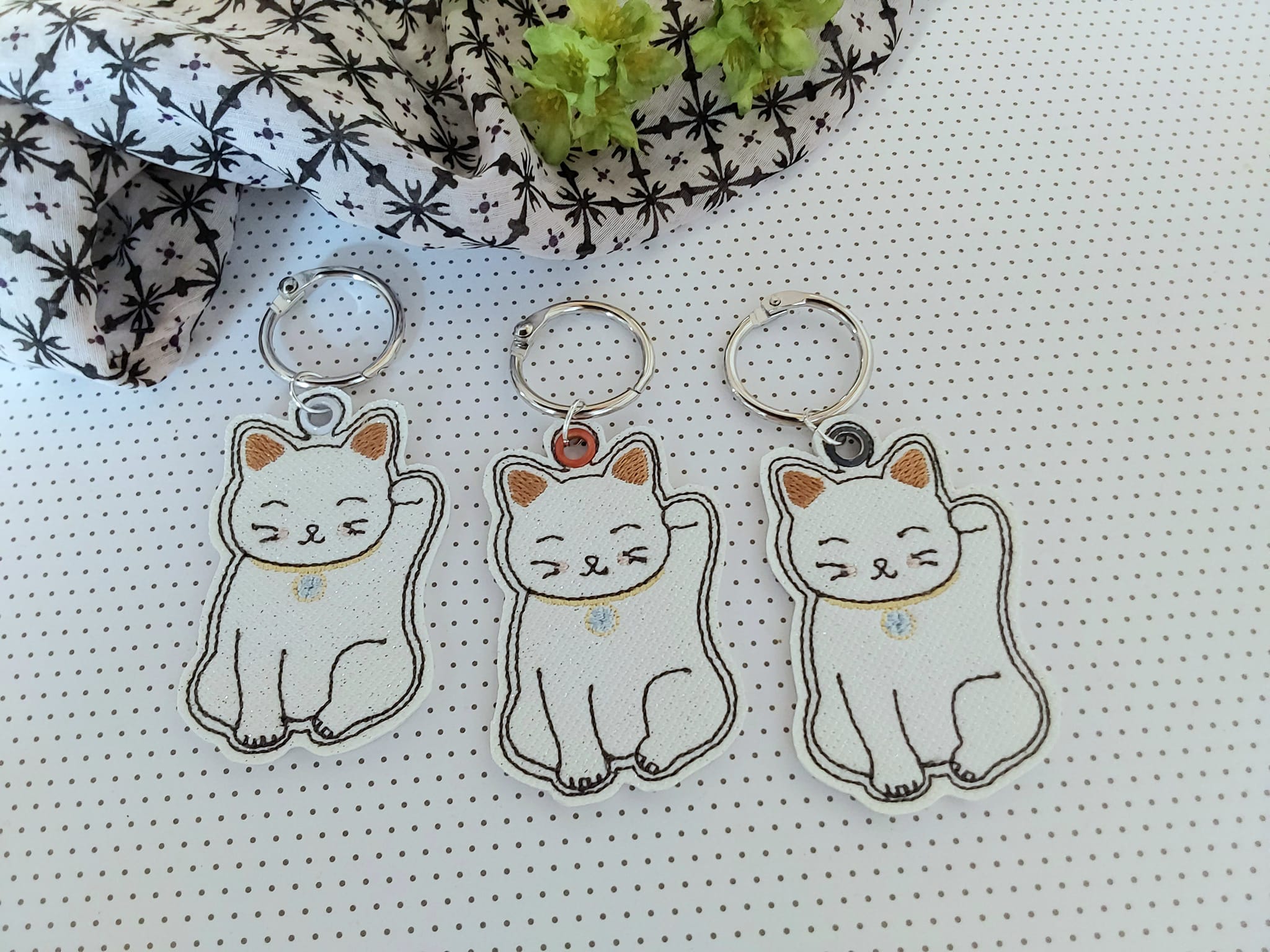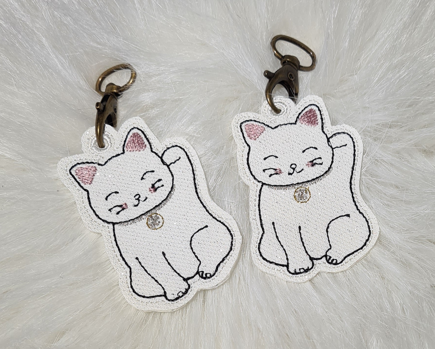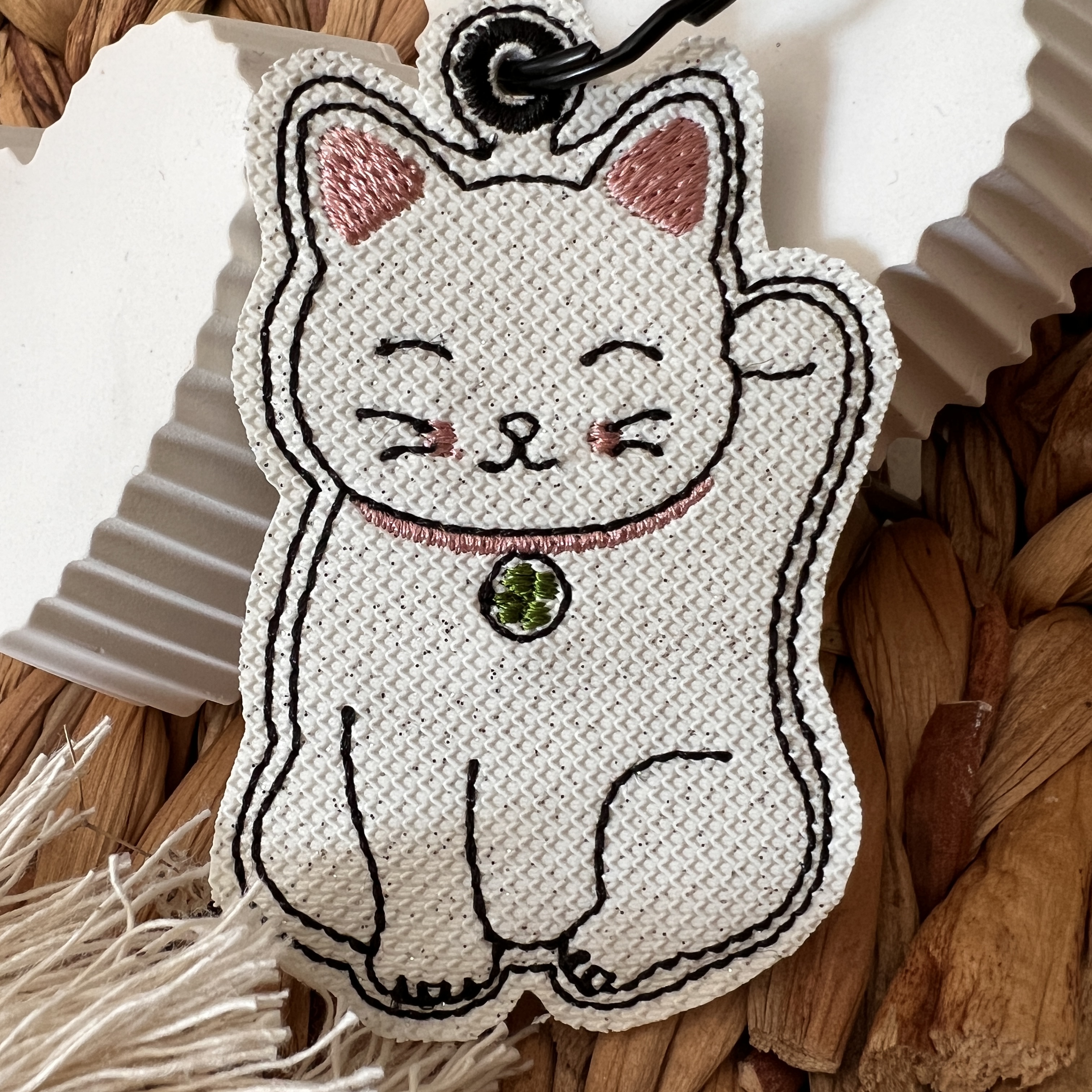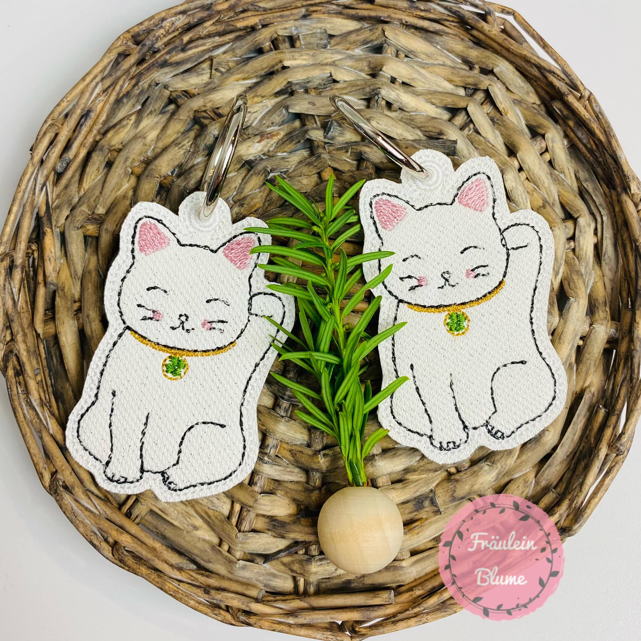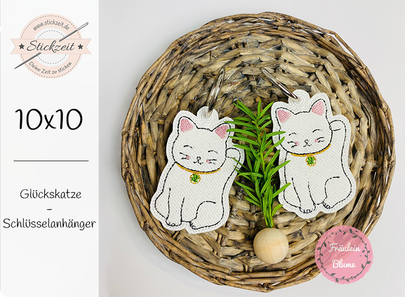 Glückskatze Schlüsselanhänger - ITH-Stickdatei für den 10x10 Rahmen.