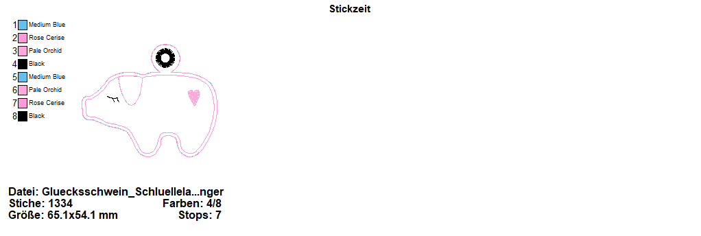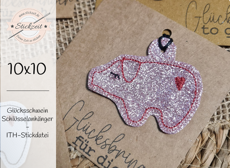 Glücksschwein Schlüsselanhänger - ITH-Stickdatei für den 10x10 Rahmen.