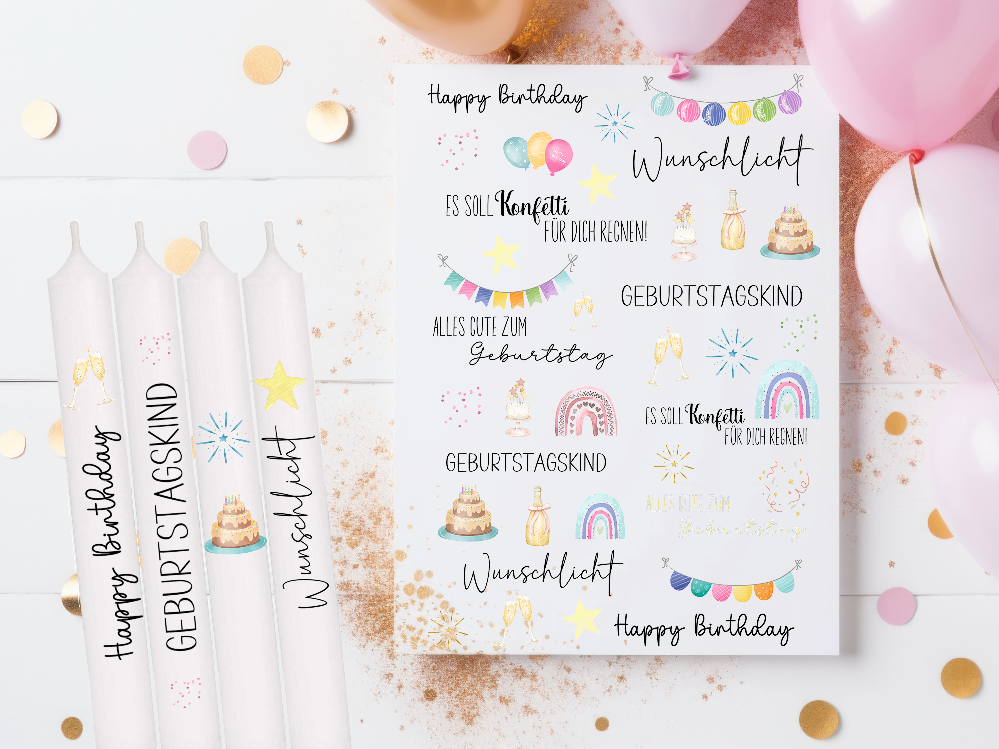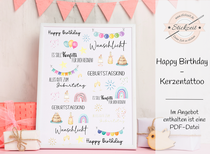 DIN A4 PDF-Vorlage für Kerzentattoos auf Wasserschiebefolie - Happy Birthday