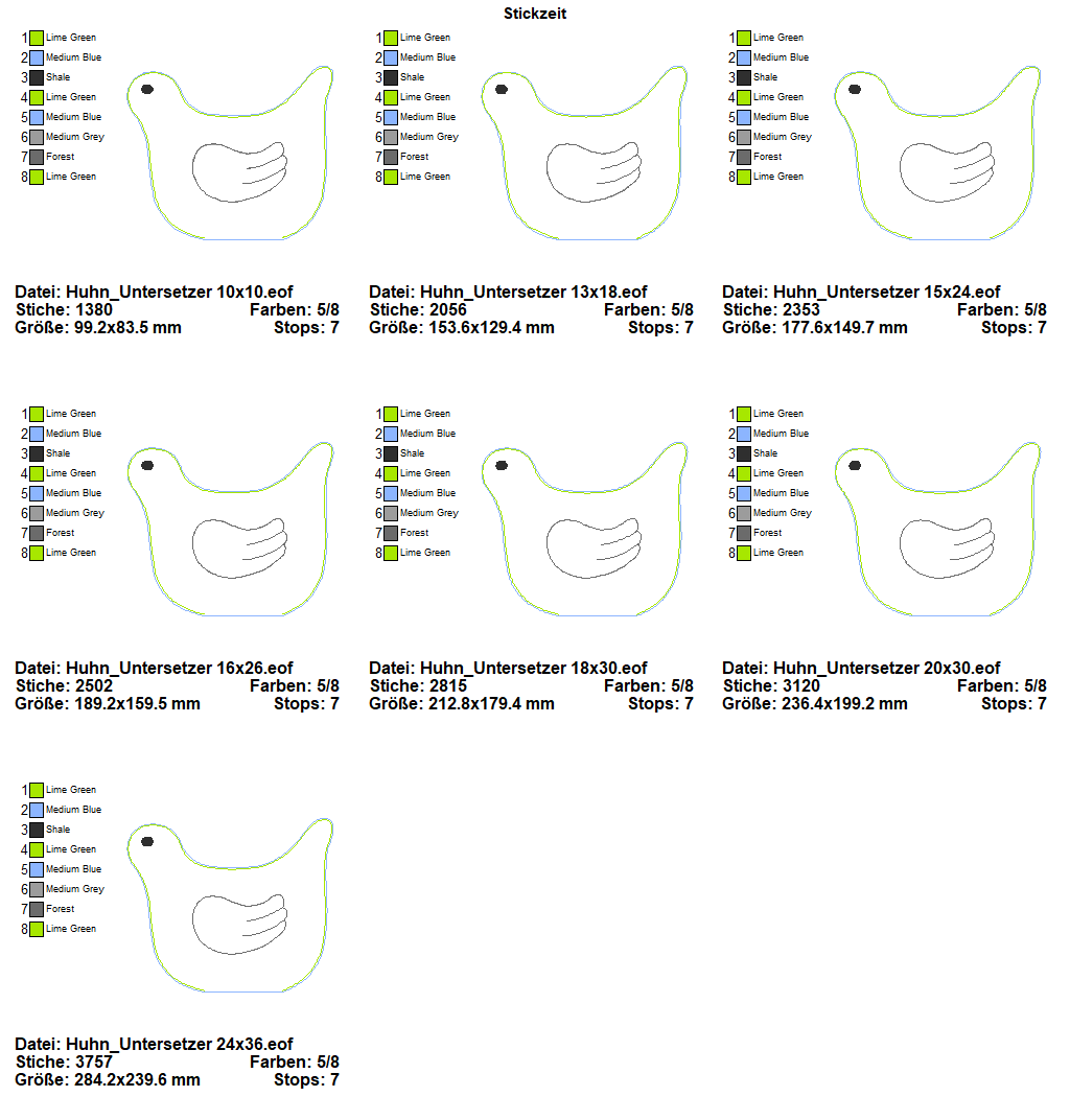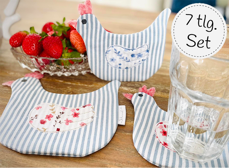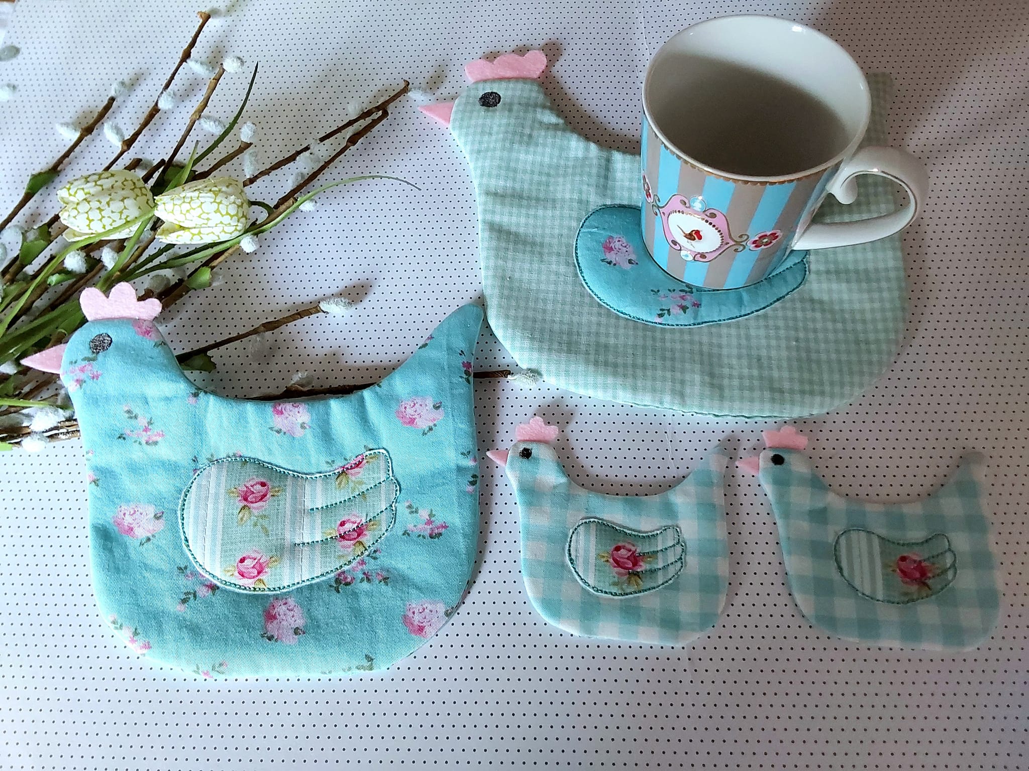 7 teiliges ITH-Set - Henne Hedwig als Untersetzer ab dem 10x10 Rahmen zu sticken.
