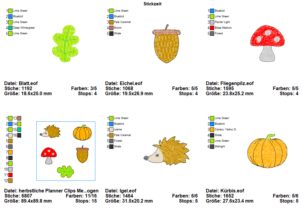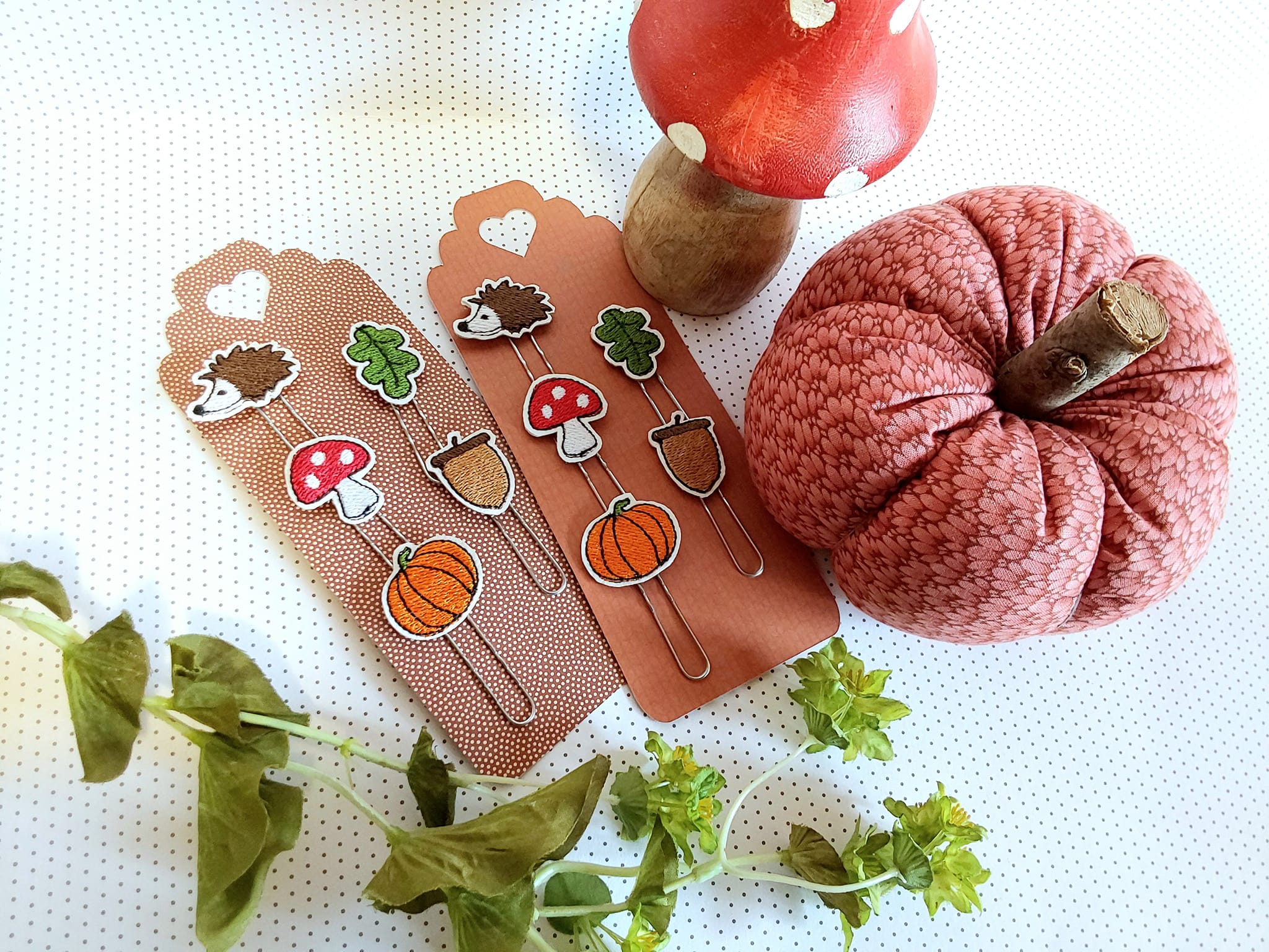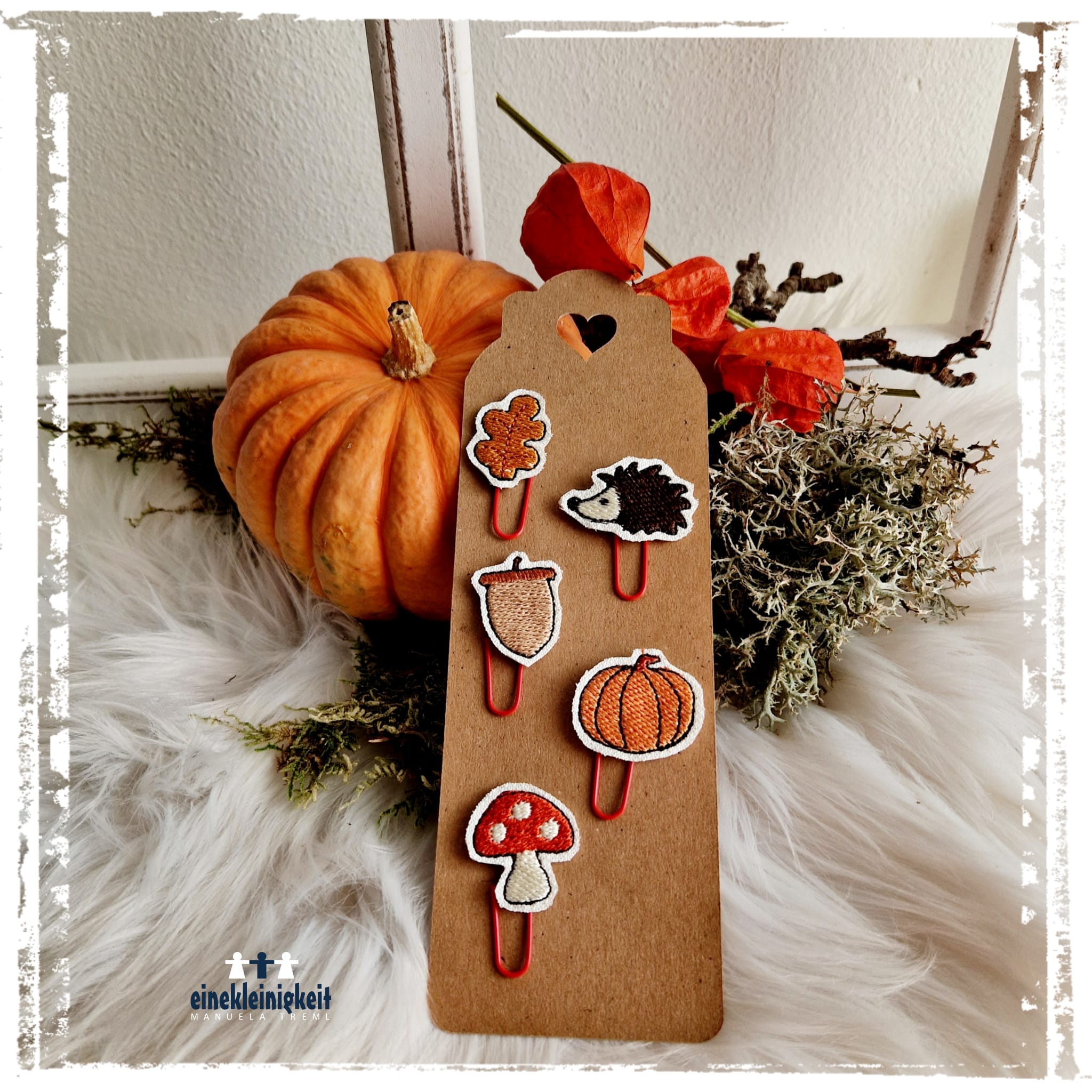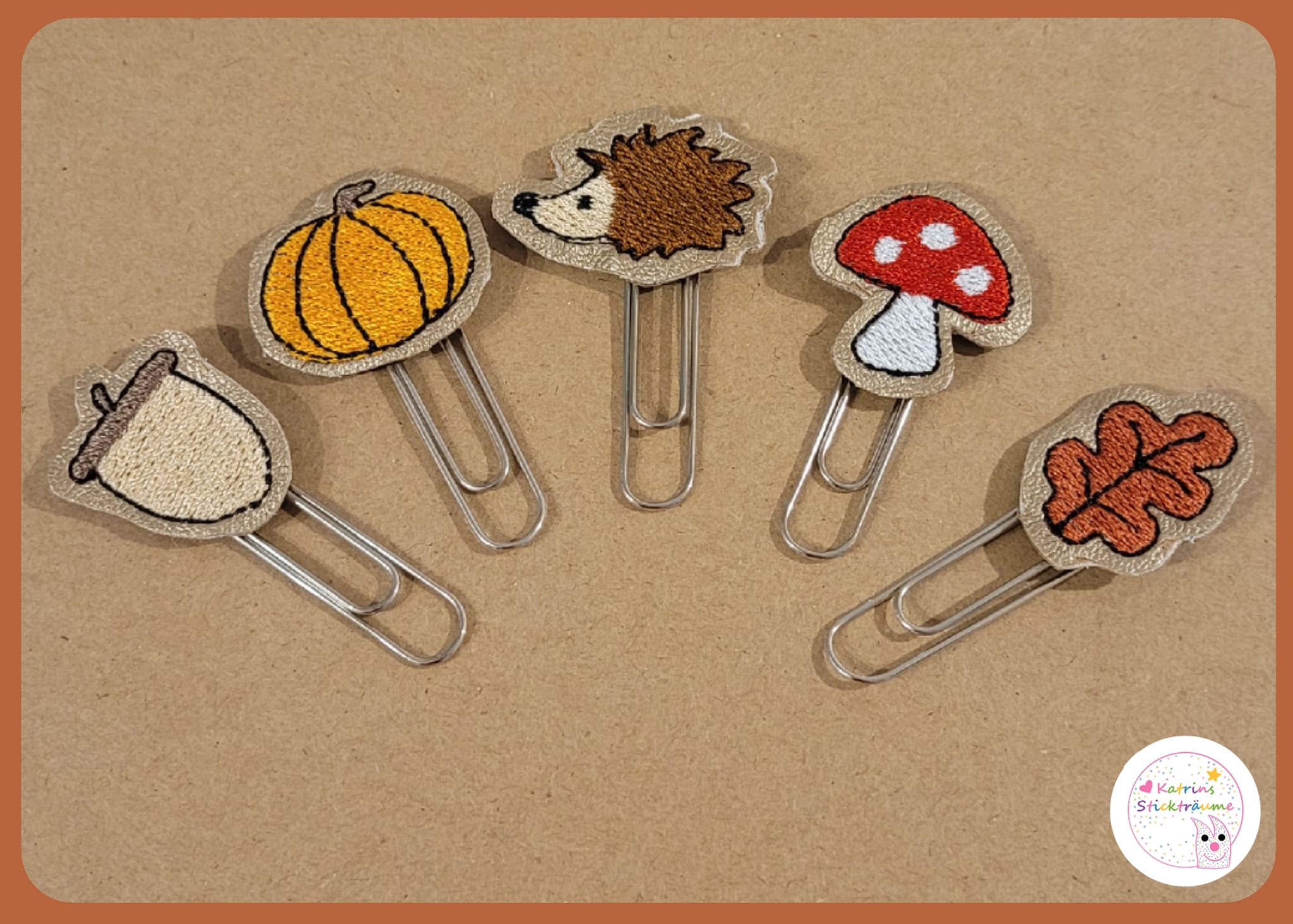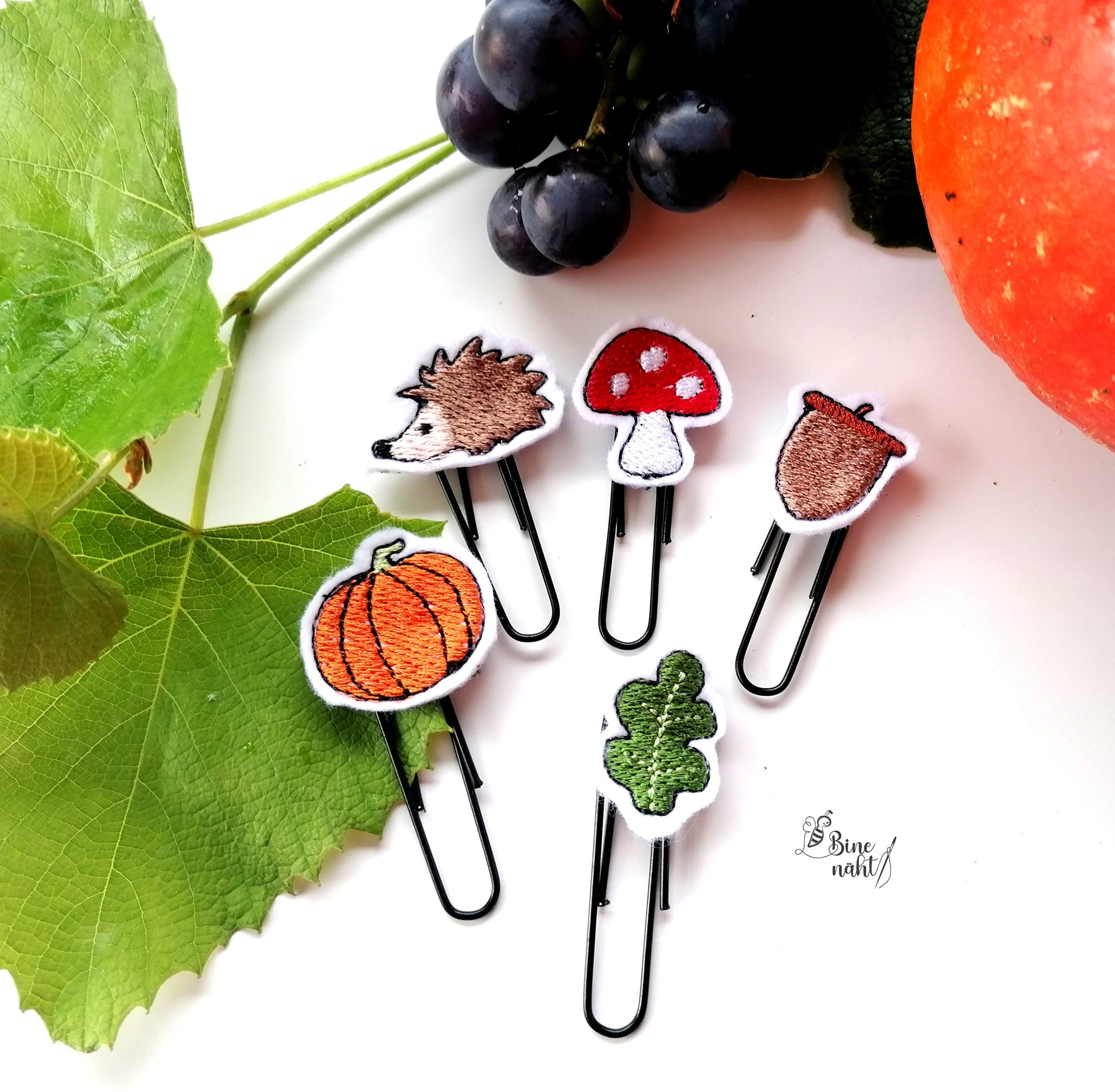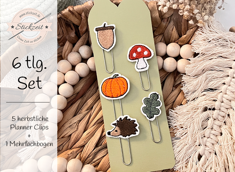 6 teiliges ITH-Stickdatei Set - herbstliche Planner Clips für den 10x10 Rahmen, inkl. Mehrfachbogen. Für Bullet Journal, Tagebücker, Lesezeichen und vieles mehr.