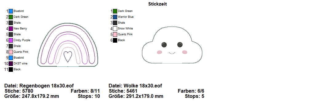 Folgende Stickformate werden in der ZIP-Datei angeboten: PEC - PES - XXX - JEF - JEF+ - SEW - EXP - VIP - VP3 - DST - HUS.