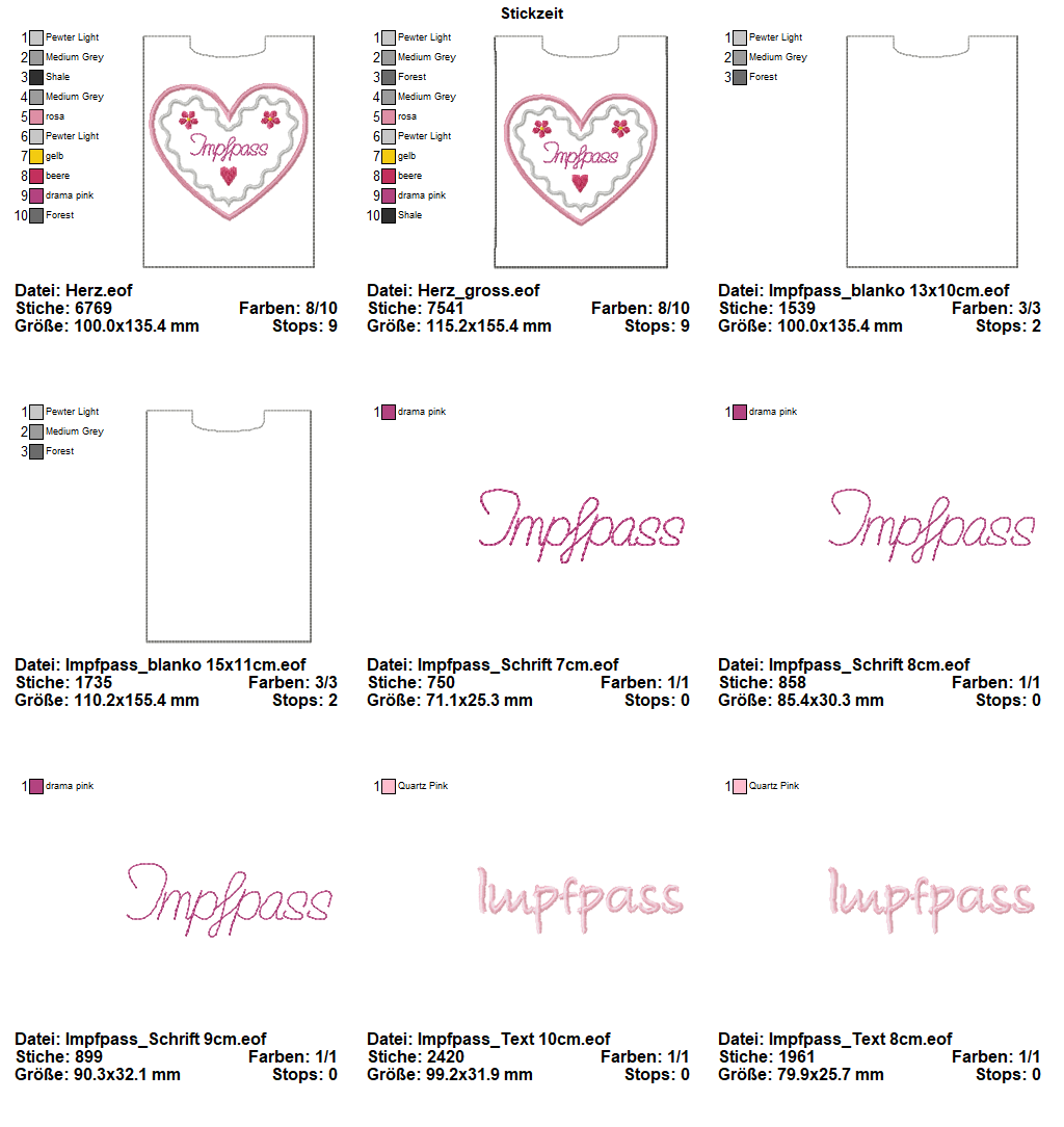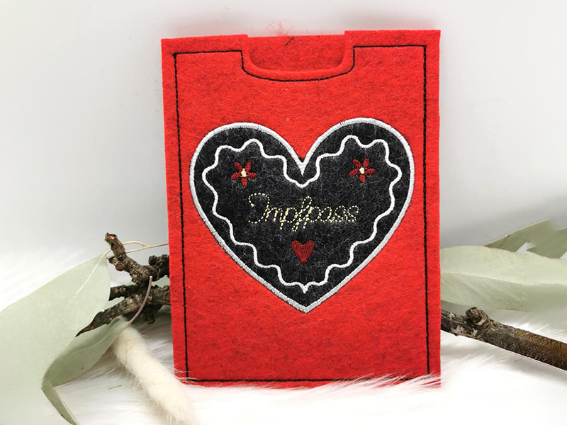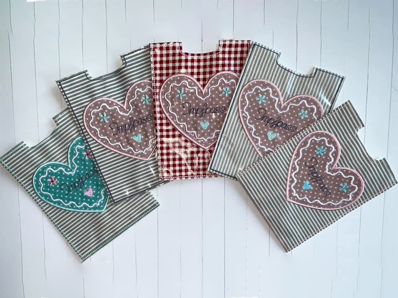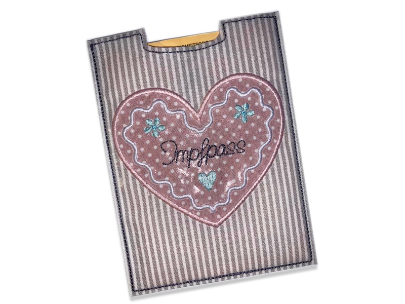 9 teiliges ITH-Stickdatei Set - Impfpasshüllen Lebkuchenherz - für den 13x18 Rahmen.