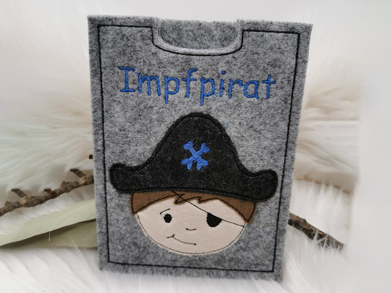 ITH-Stickdatei - Impfpasshülle Impfpirat - für den 13x18 Rahmen. Der ideale Schutz für den Impfpass Deines Kindes.