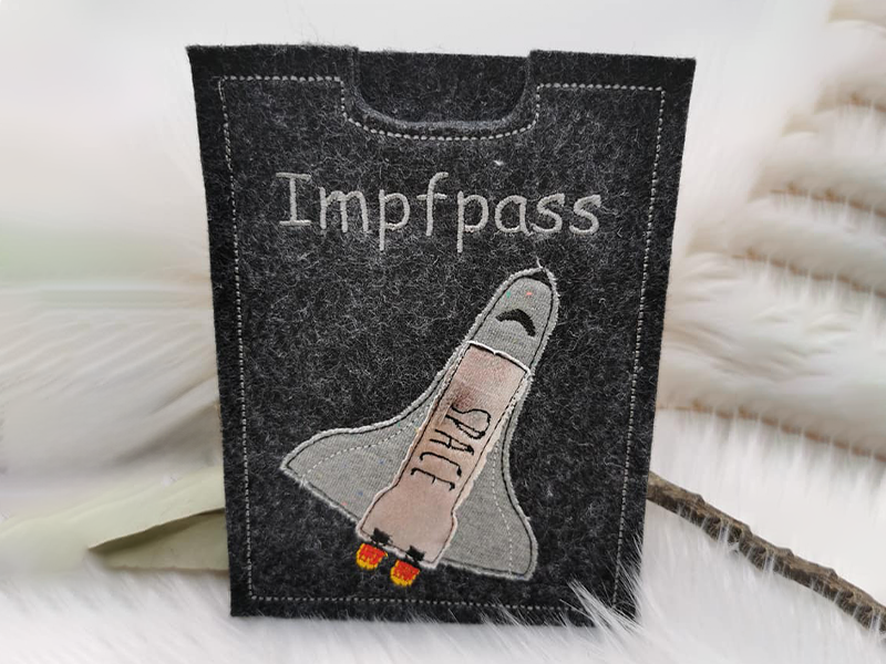 ITH-Stickdatei - Impfpasshülle Rakete - für den 13x18 Rahmen. Der ideale Schutz für den Impfpass Deines Kindes.