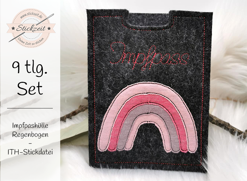 9 teiliges ITH-Stickdatei Set - Impfpasshülle Regenbogen - für den 13x18 Rahmen.