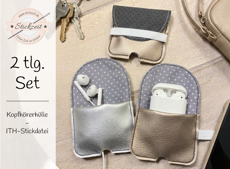 Mit diesem praktischen ITH-Stickdatei-Set gestaltest du im Handumdrehen funktionale Kopfhörerhüllen direkt im Stickrahmen (In The Hoop). Dank der cleveren Öffnung kannst du deine Kopfhörer bequem laden, ohne sie aus der Hülle zu nehmen – ideal für den Alltag oder unterwegs.