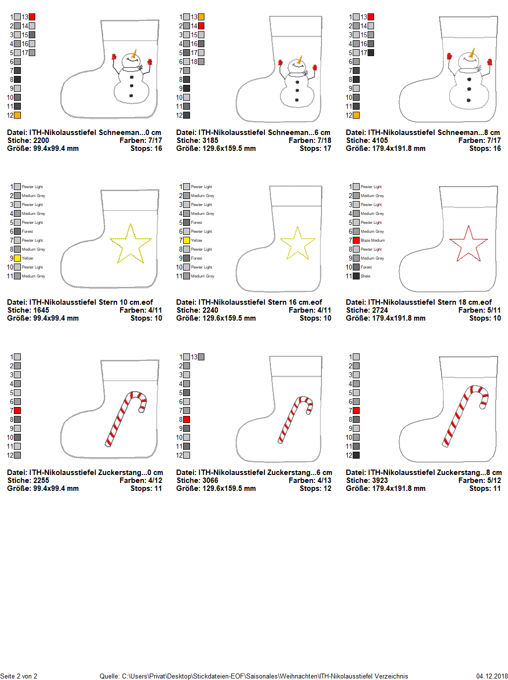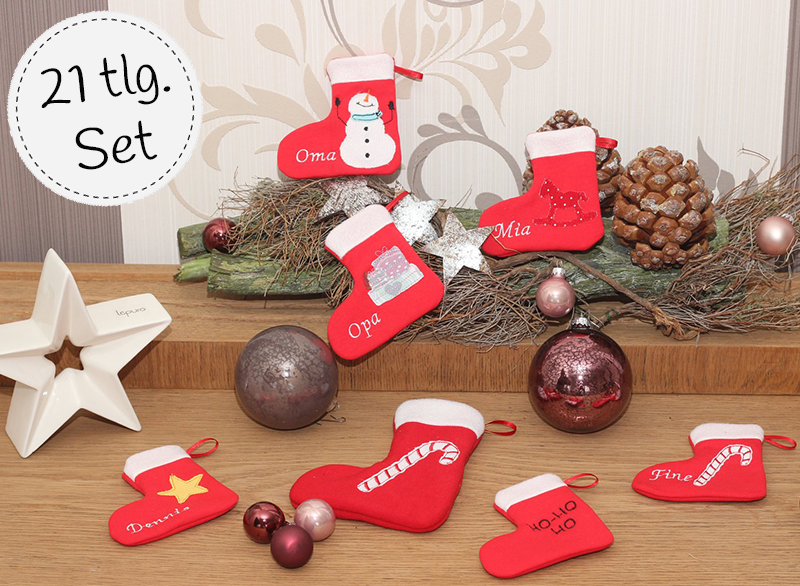 21 teiliges ITH - Nikolausstiefel Set inklusive Blankostiefel für den 10x10 und 13x18 Rahmen.