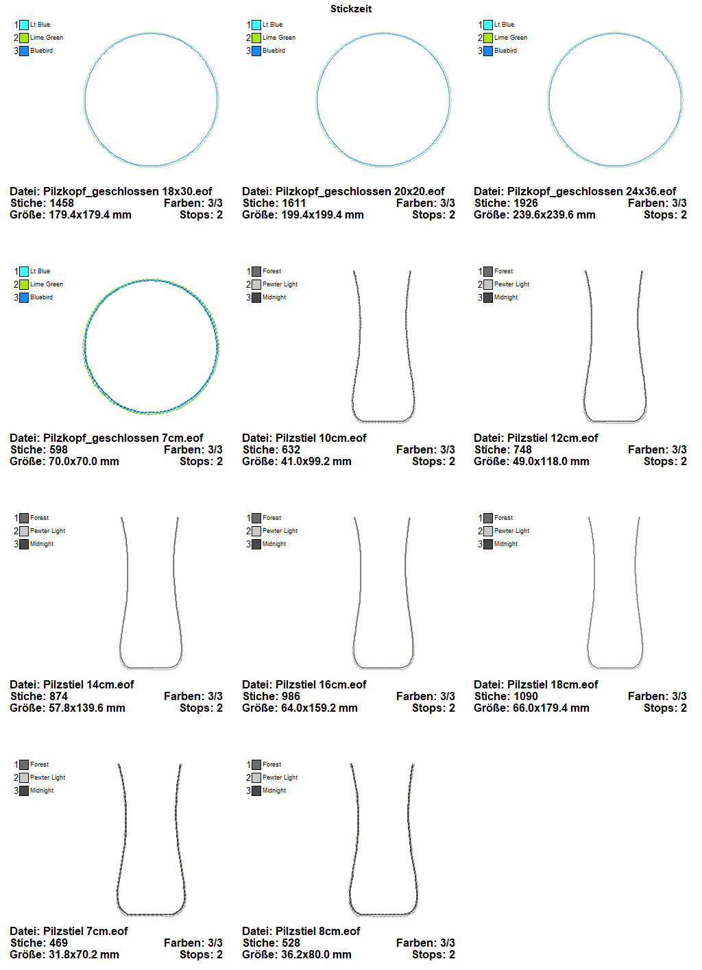 Folgende Stickformate werden in der ZIP-Datei angeboten: PEC - PES - XXX - JEF - JEF+ - SEW - EXP - VIP - VP3 - DST - HUS.