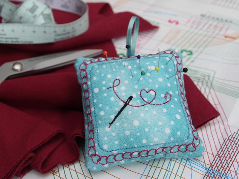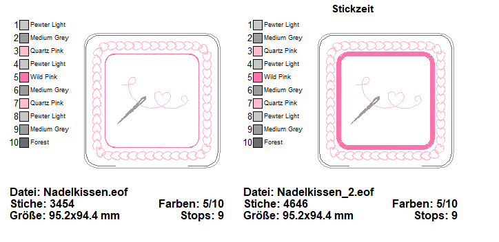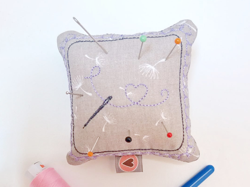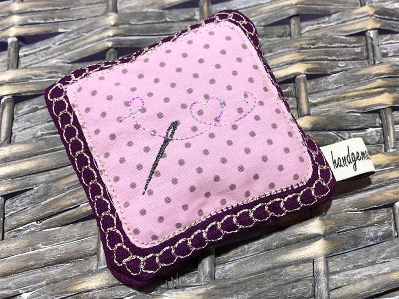 2 teiliges ITH-Stickdatei Set - Nadelkissen NähLiebe - für den 10x10 Rahmen. Kleines süßen Nadelkissen zum Verschenken oder Behalten.