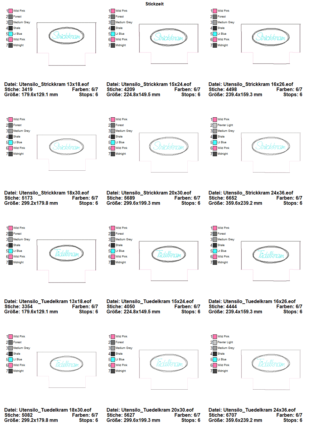 Utensilo Set in 6 Größen von 13x18 bis 24x36 für Euren Woll- oder Tüdelkram sowie als Blankodatei. Für die Fertigstellung der Utensilos ist eine Nähmaschine notwendig. Eine bebilderte Schritt für Schritt Anleitung liegt in der ZIP anbei.