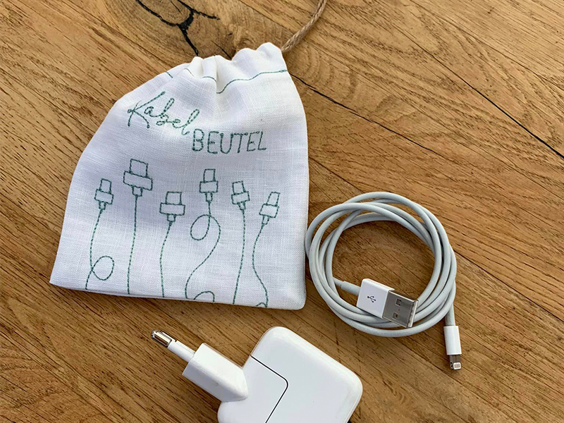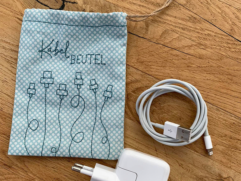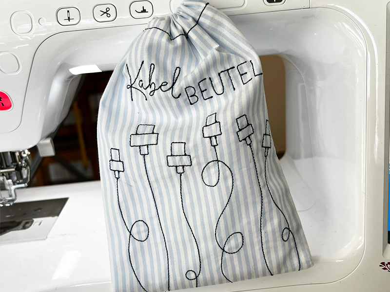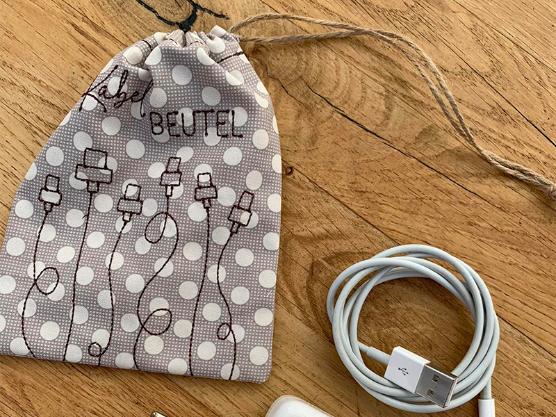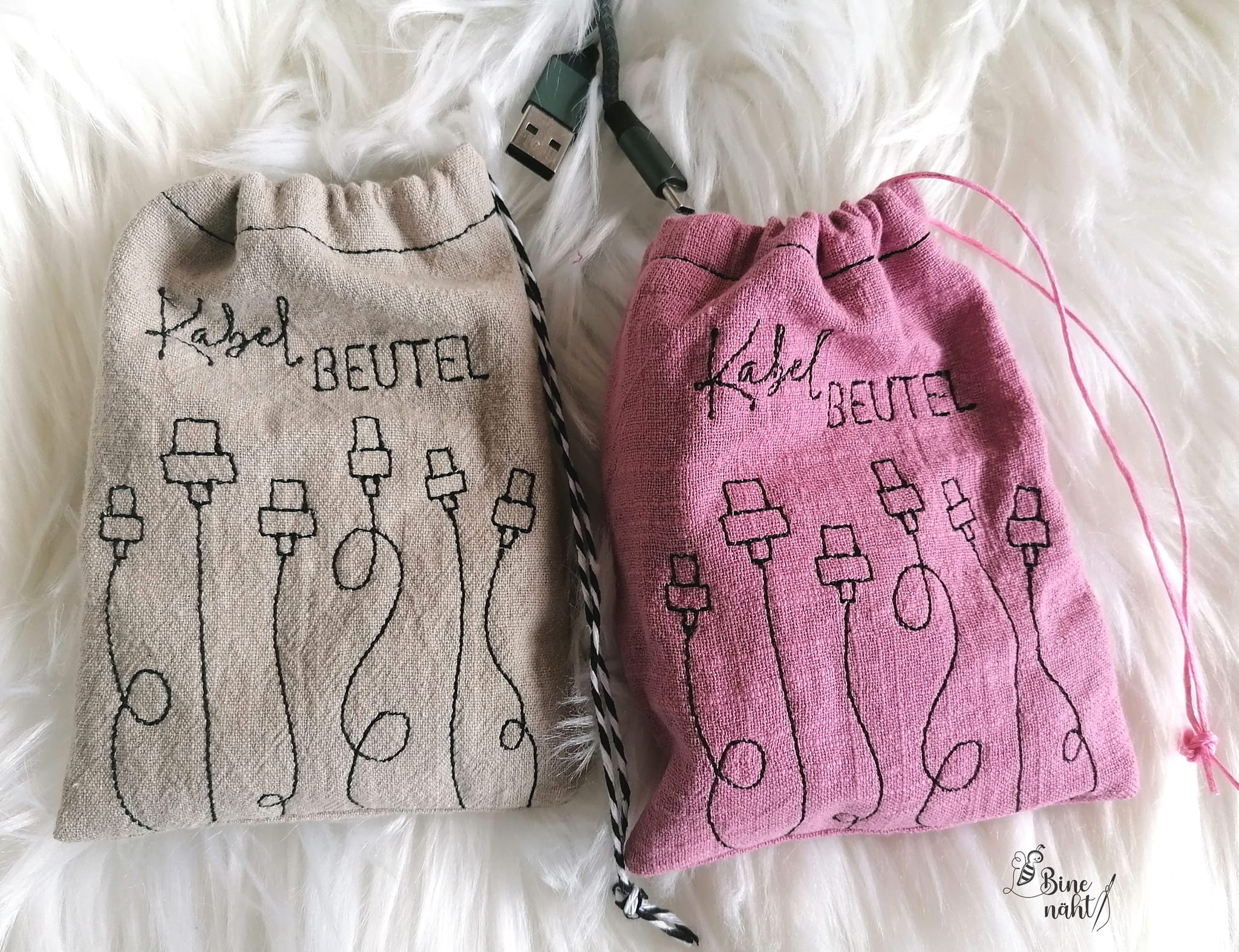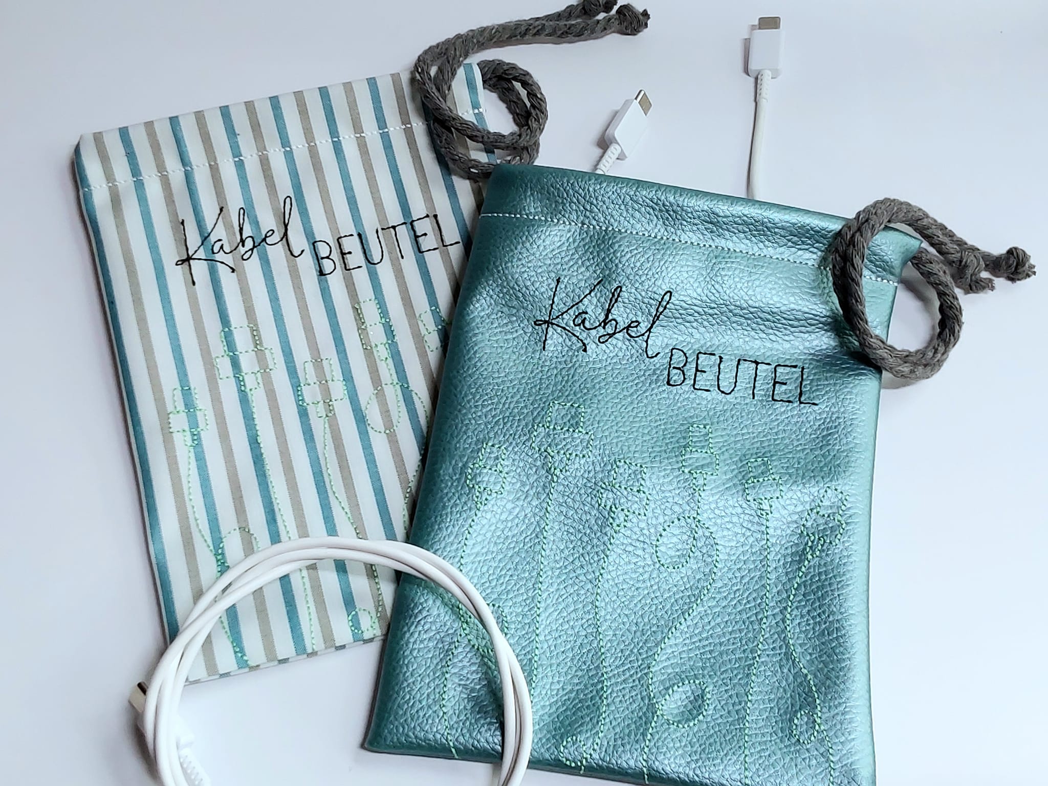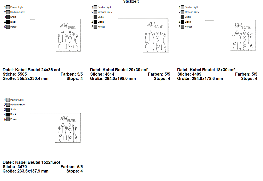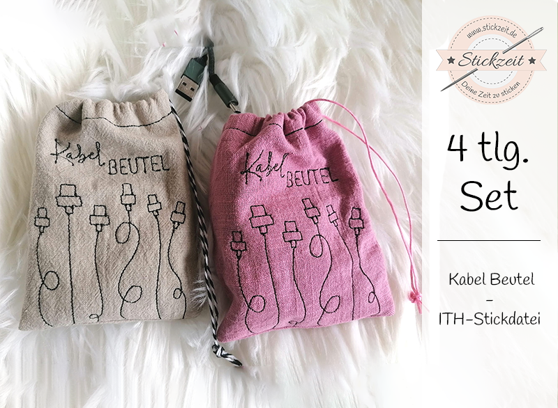 4 teiliges ITH-Stickdatei Set - Kabel Beutel, ab dem 15x24 bis 24x36 Rahmen.