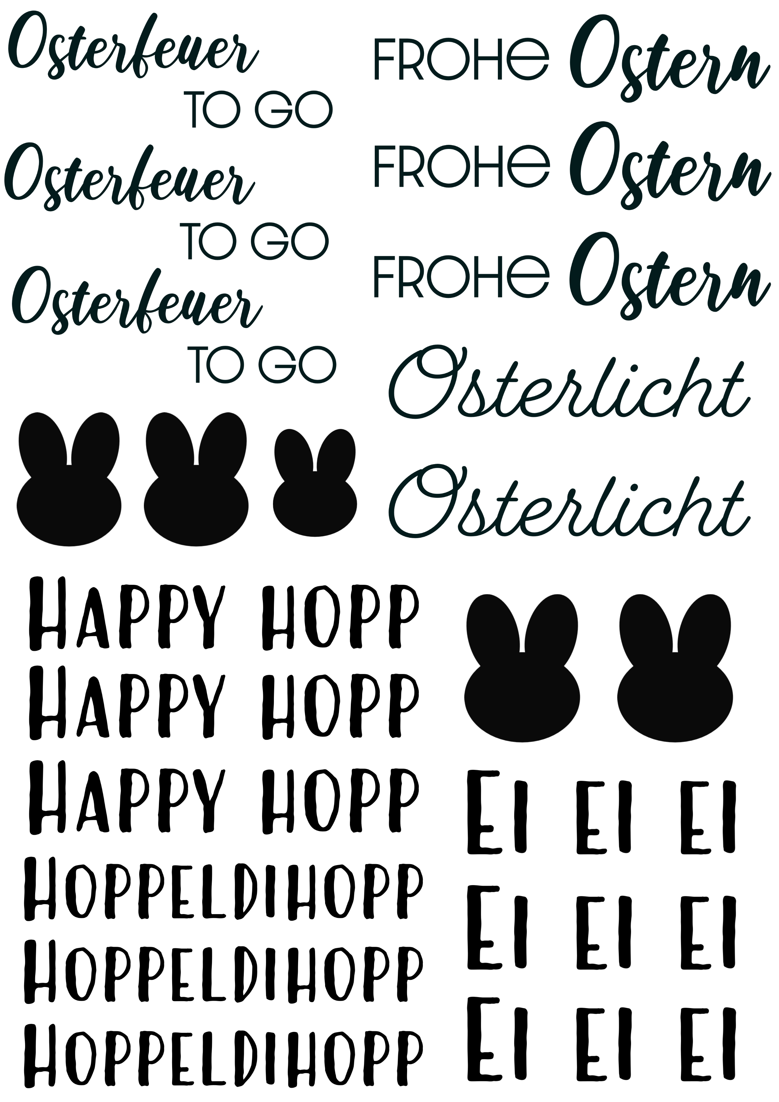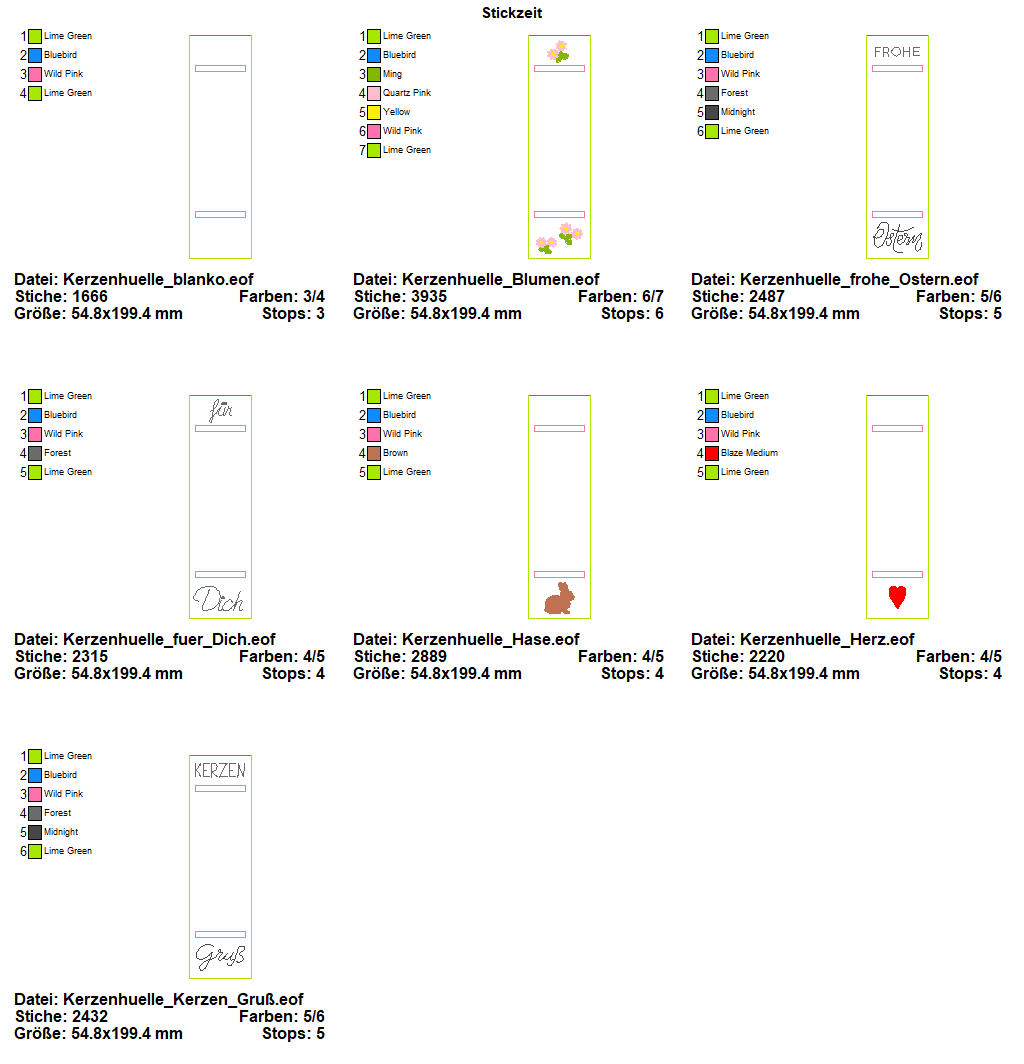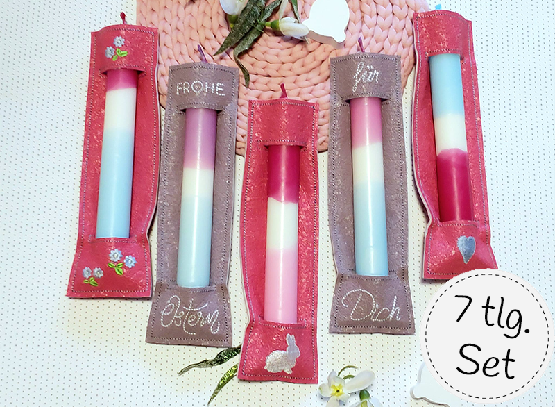 7 teiliges ITH-Kerzenhüllen Set - Ostern, inkl. Vorlage für Kerzentattoos als PNG und PDF Datei.
