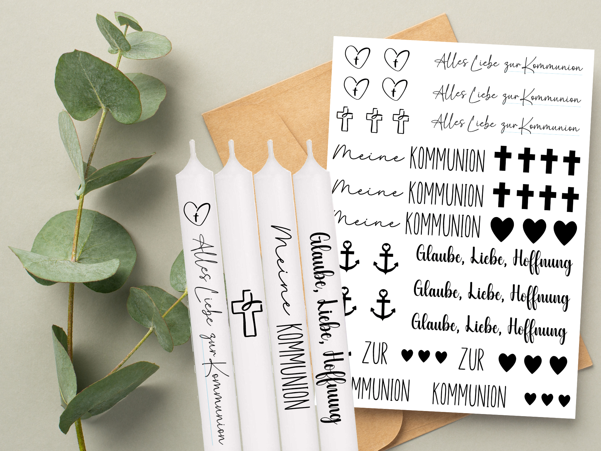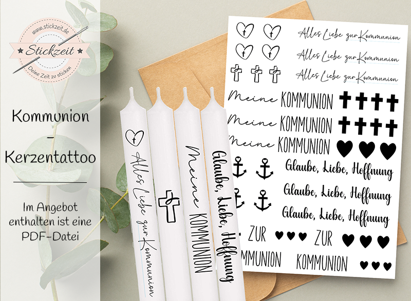 DIN A4 PDF-Vorlage für Kerzentattoos auf Wasserschiebefolie - Kommunion