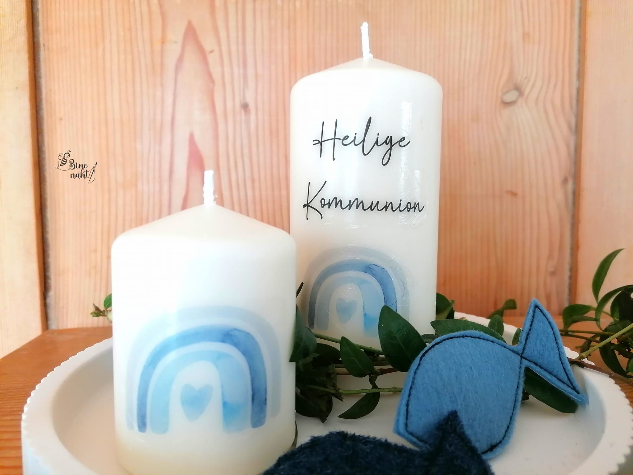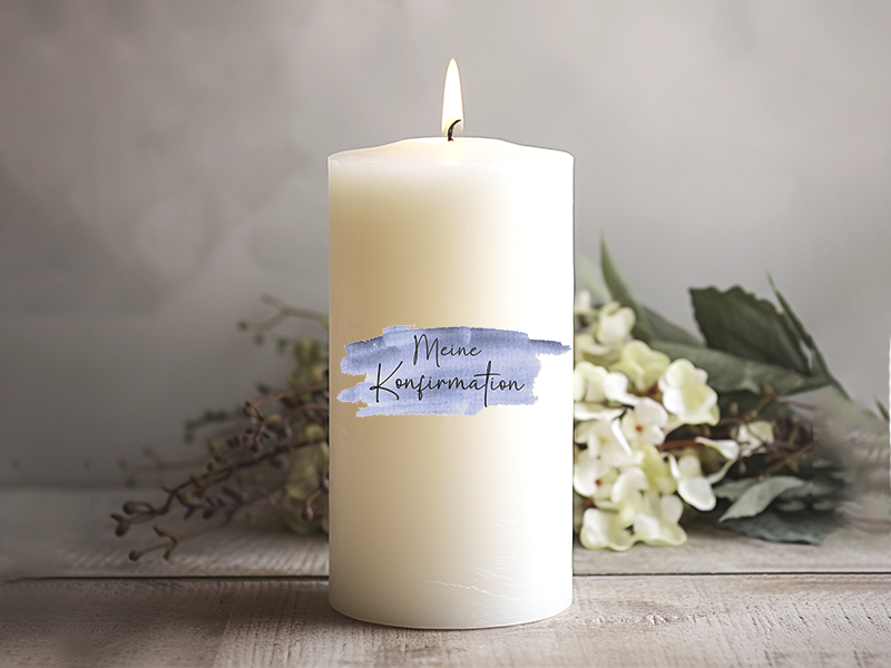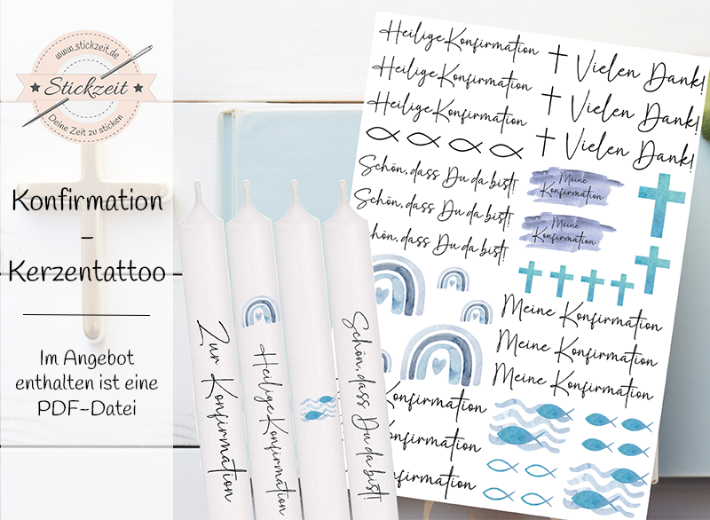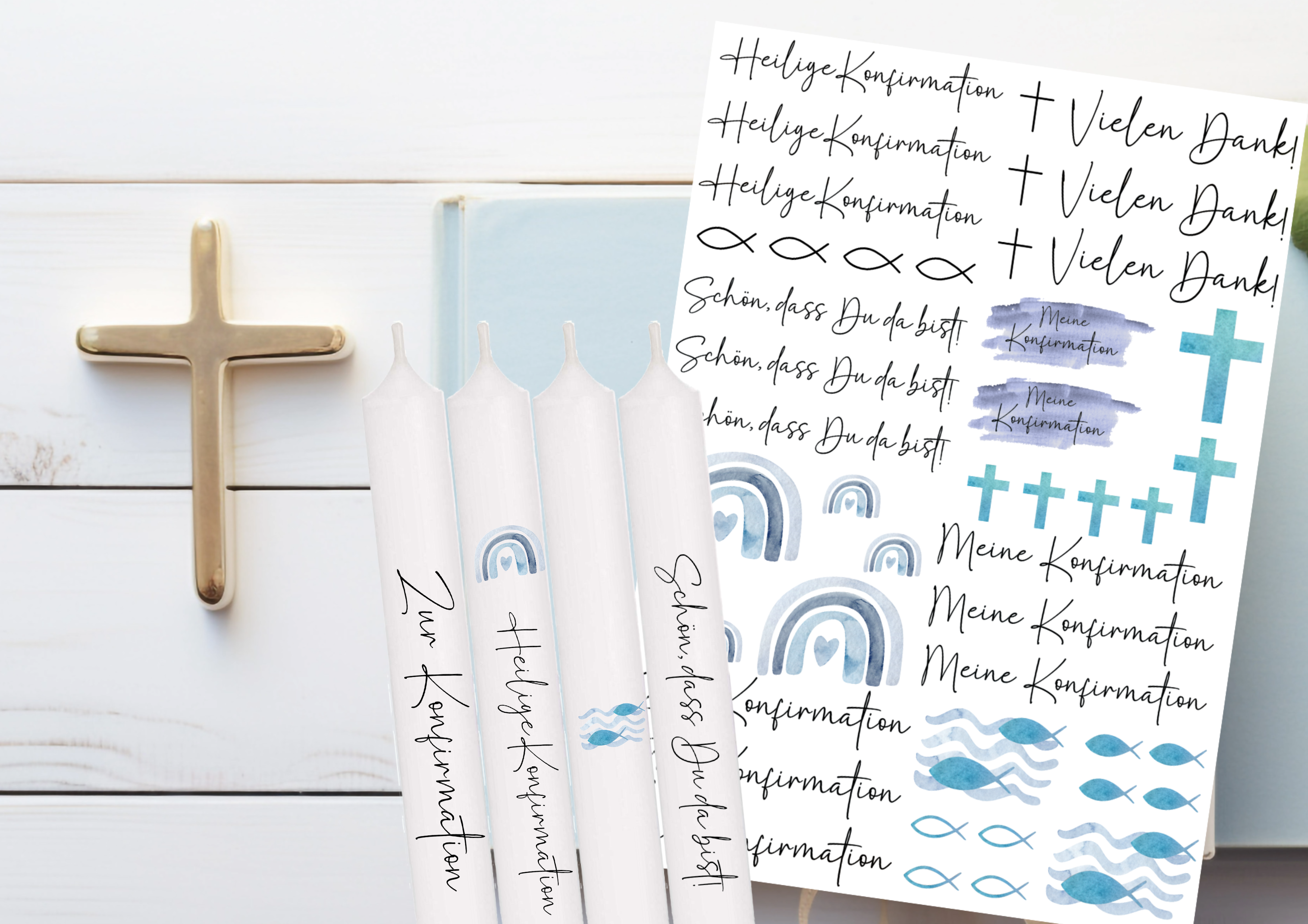 DIN A4 PDF-Vorlage für Kerzentattoos auf Wasserschiebefolie - Konfirmation blau.
